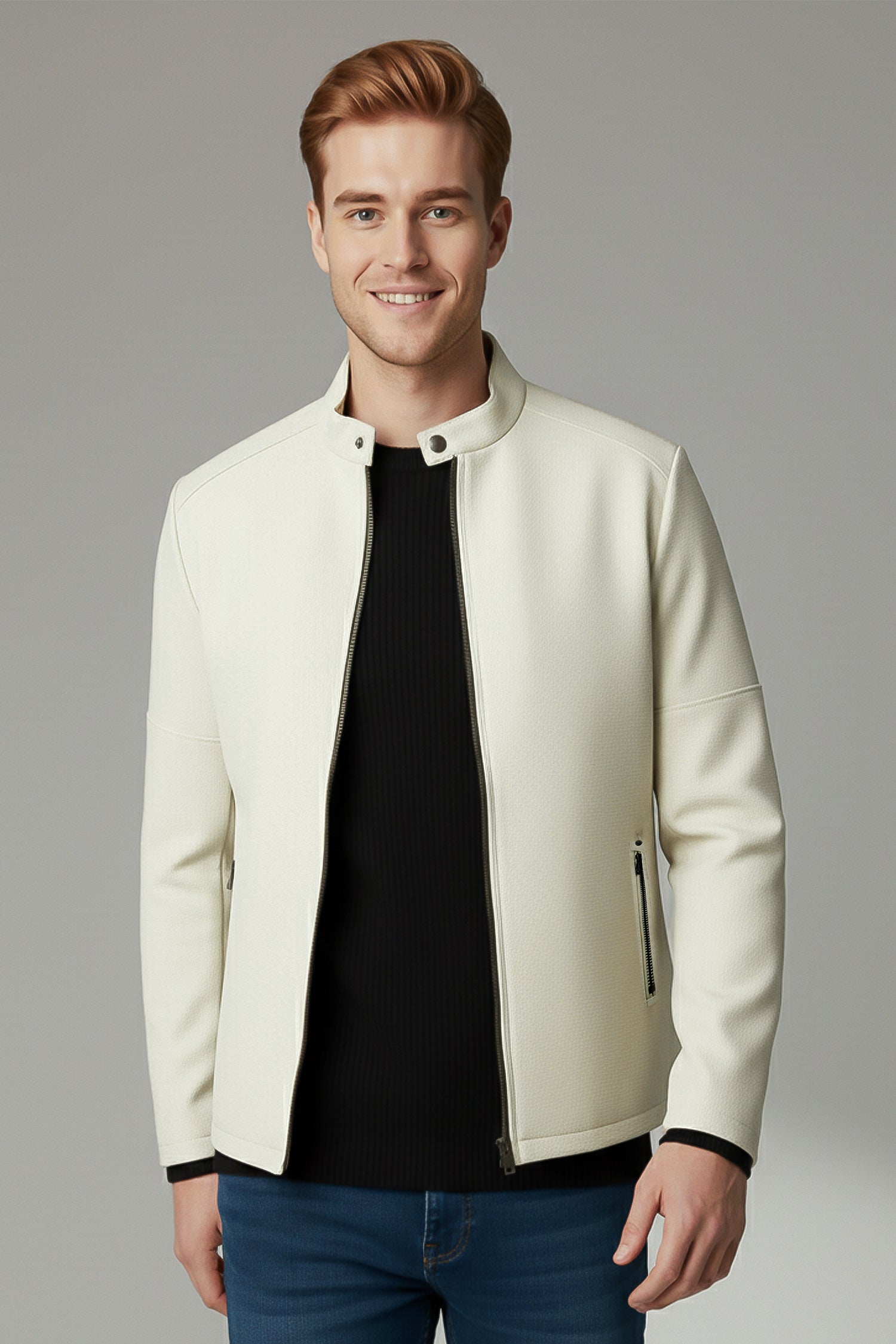 Wind Guard Imported Suede Leather Jacket In Cream