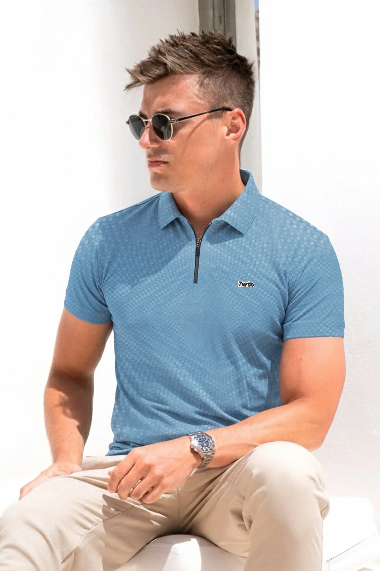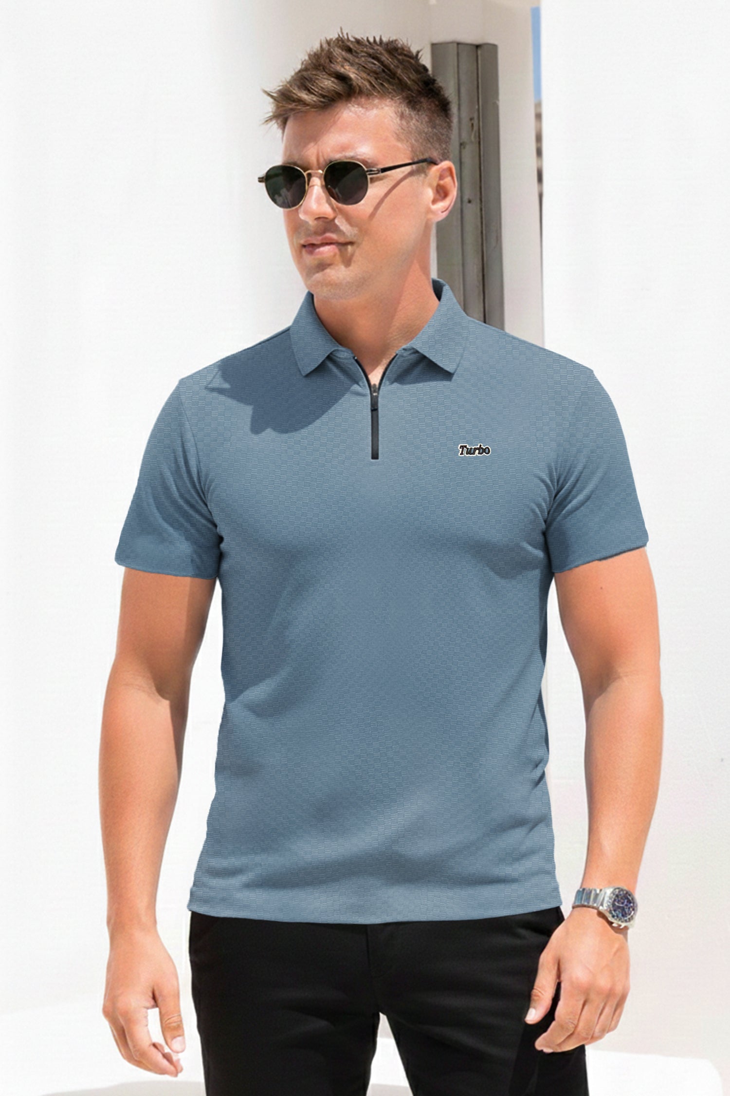 Turbo Abstract Symmetry Zip-Collar Men's Polo Shirt