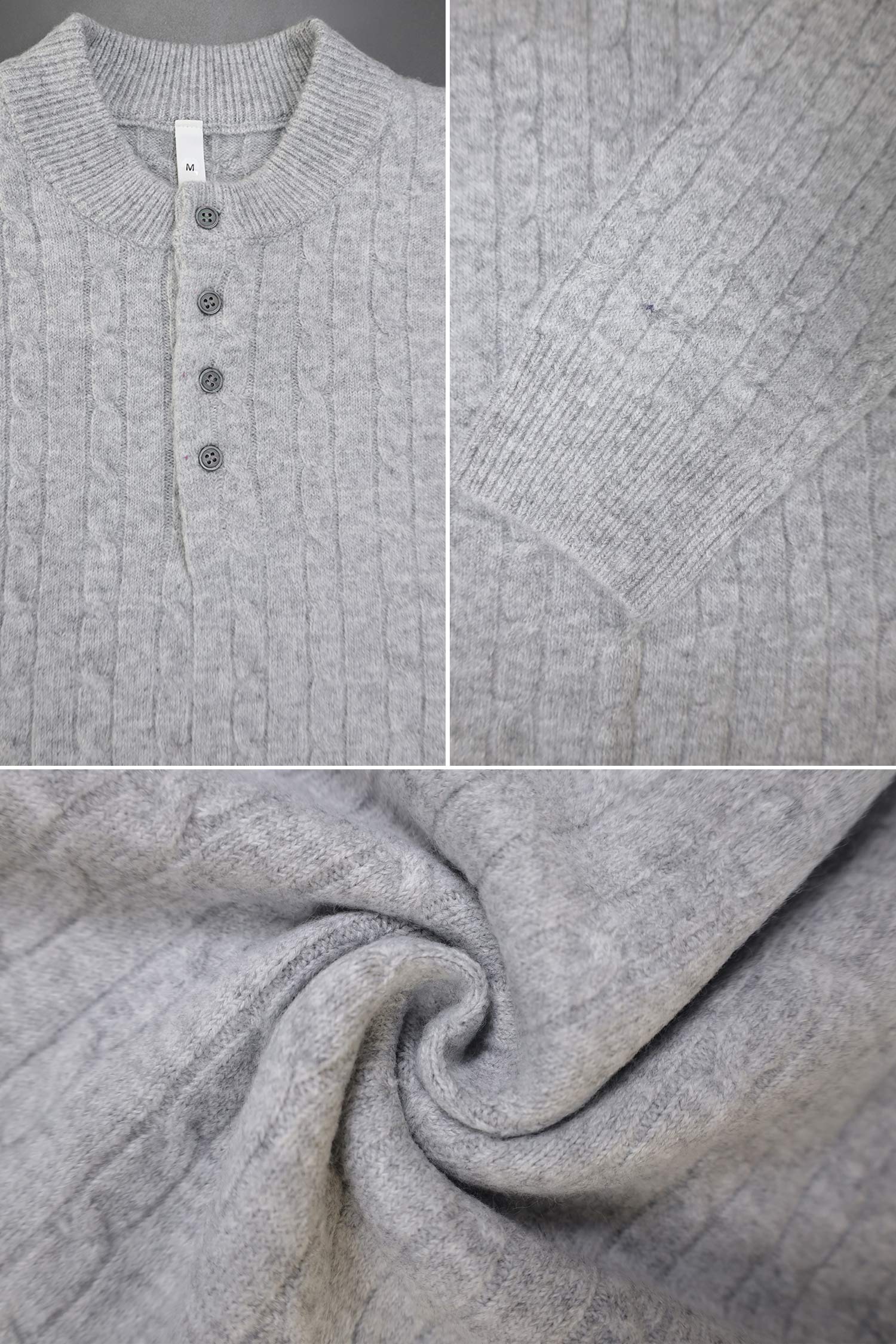 Turbo Cable Knit Jummper Imported Men's Sweater In Stone Grey