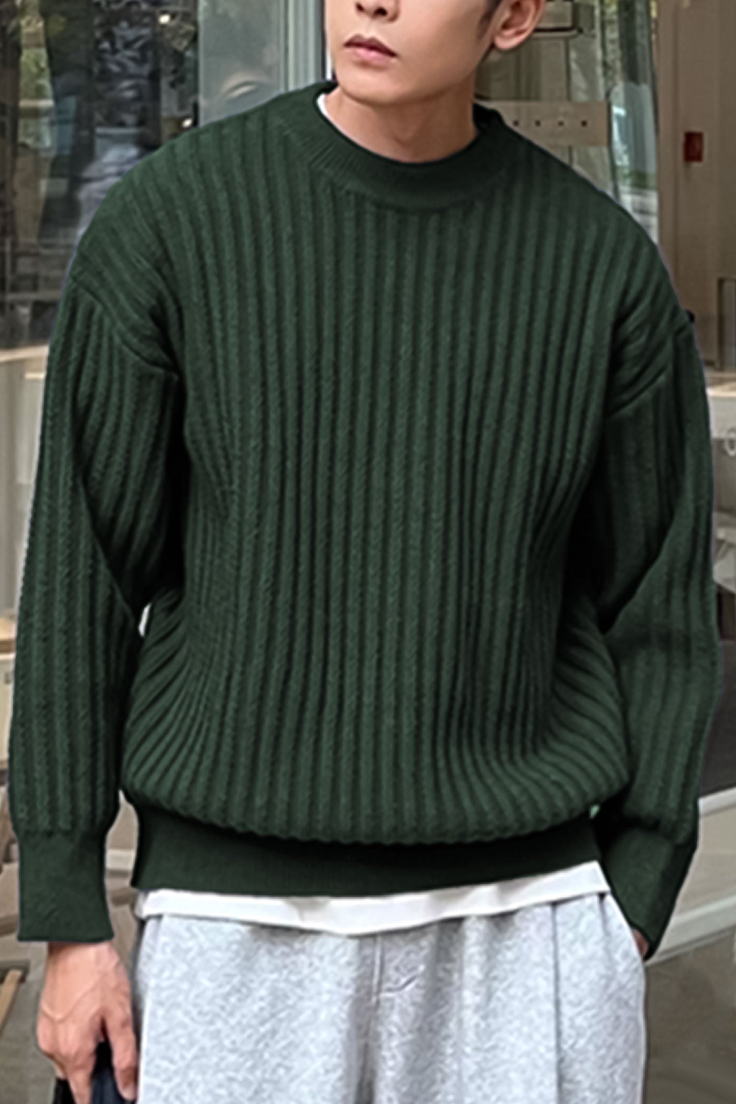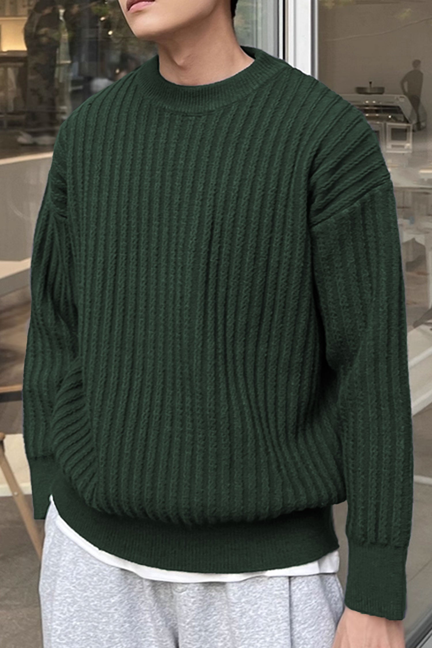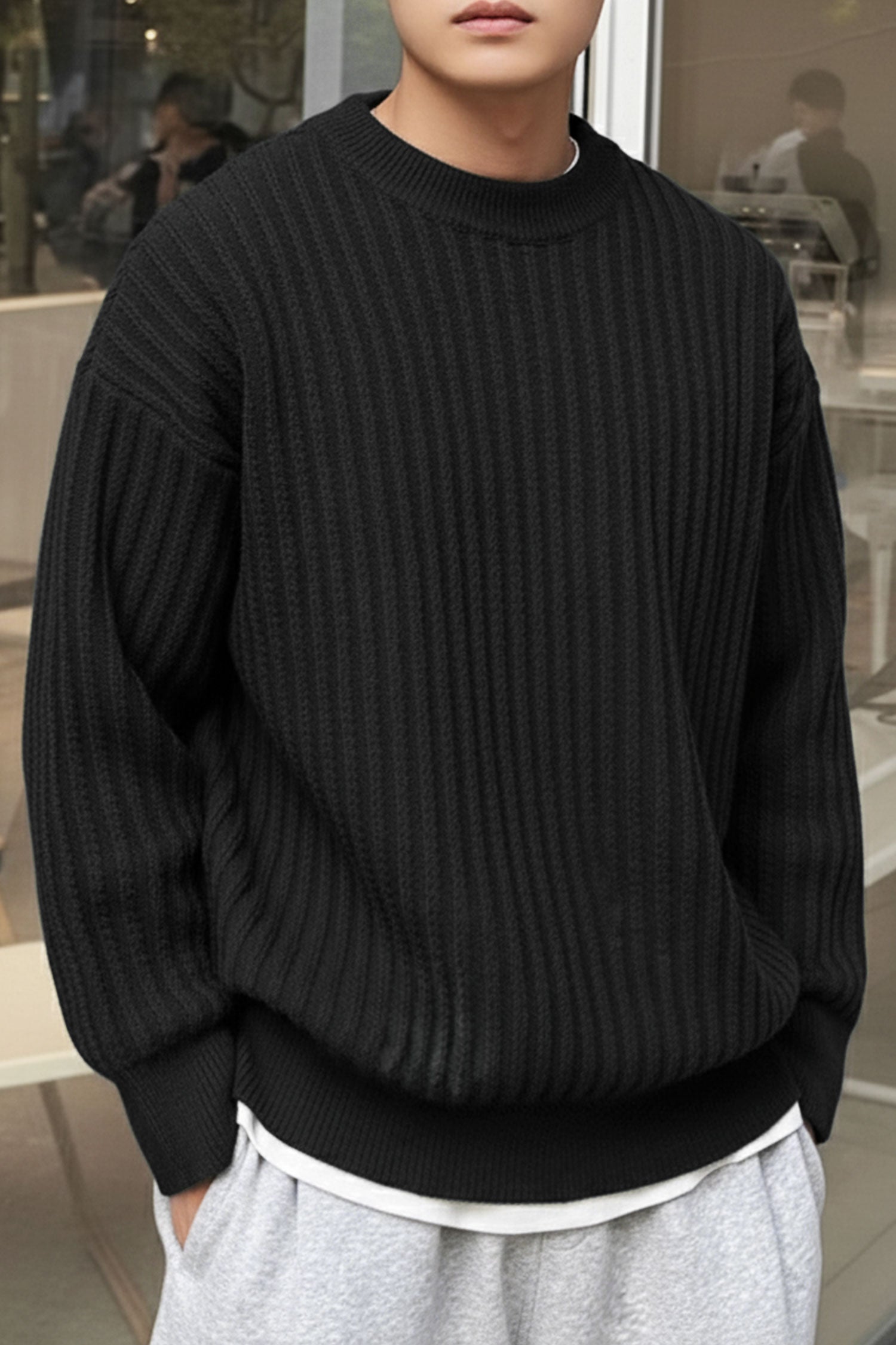- This Sweater is made with Imported Cotton Lycra & features a classic plain Crew -neck design.