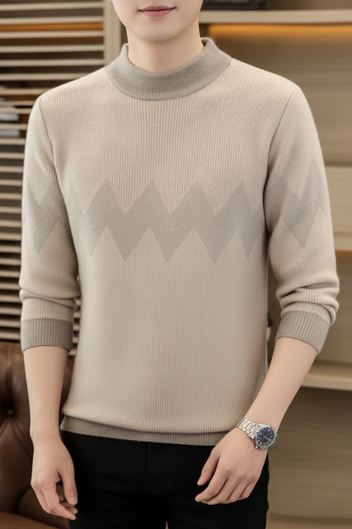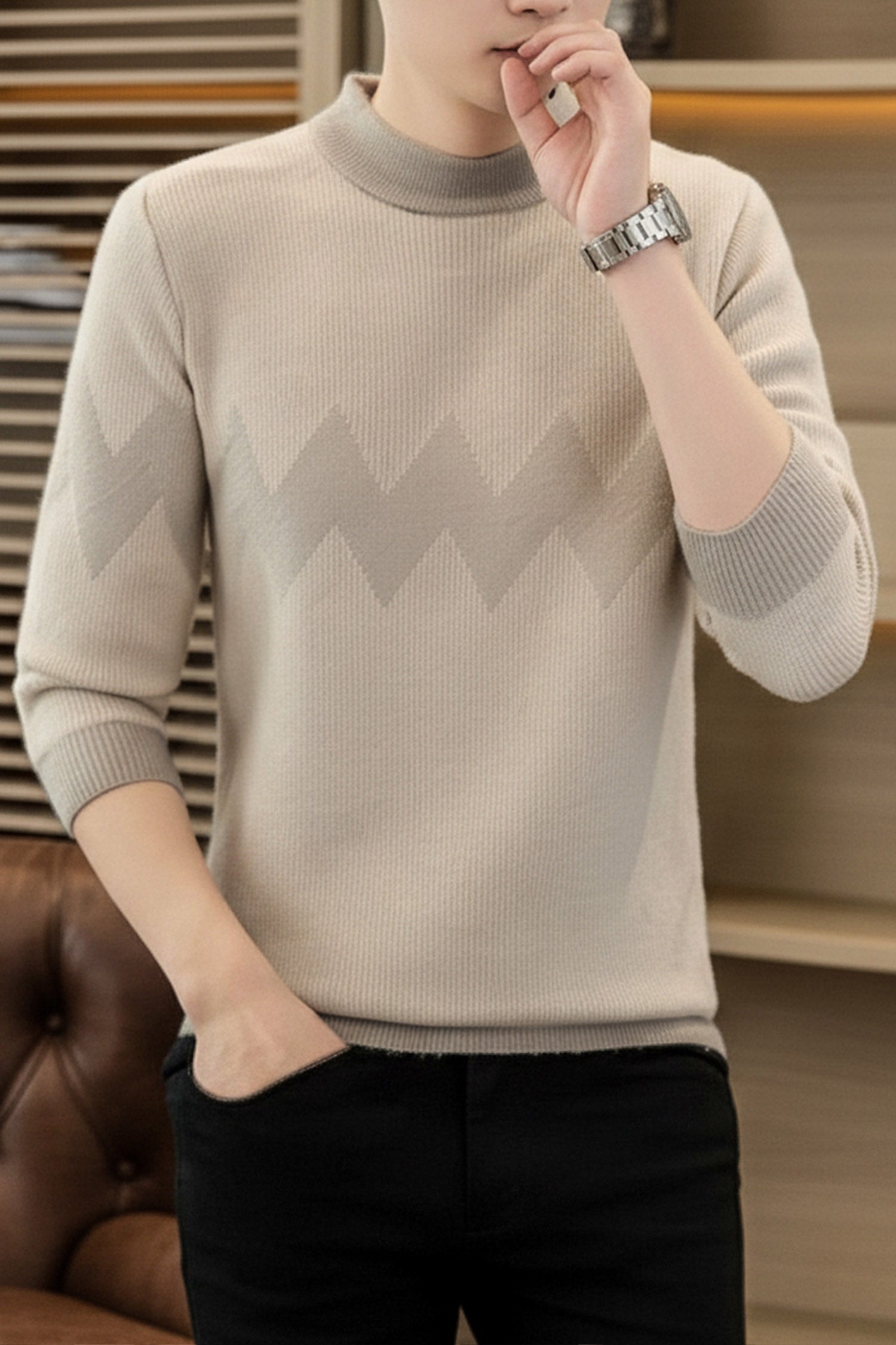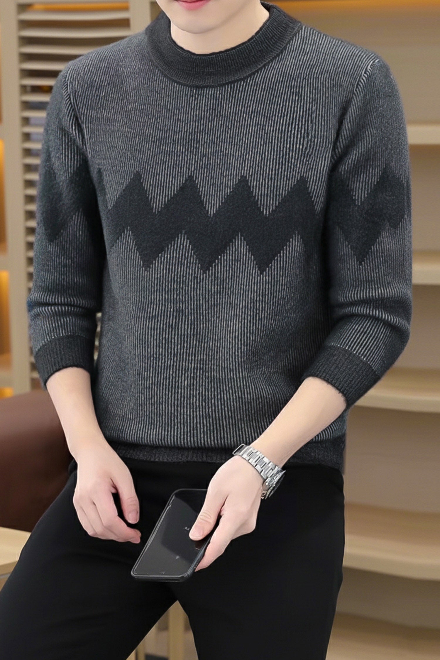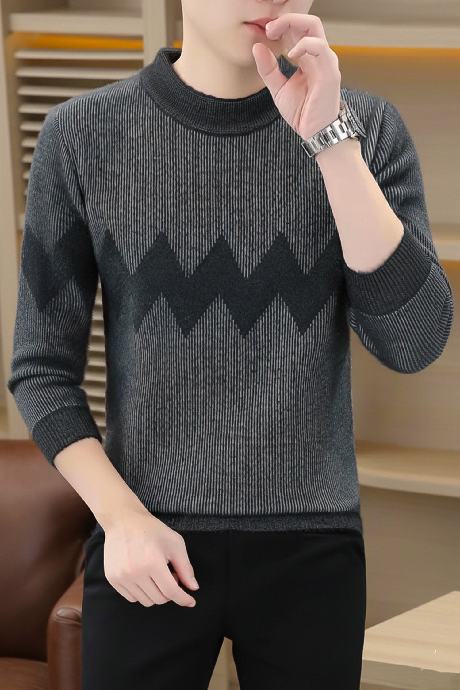 - This Sweater is made with Imported Rabbit Wool & features a classic plain Crew -neck design.