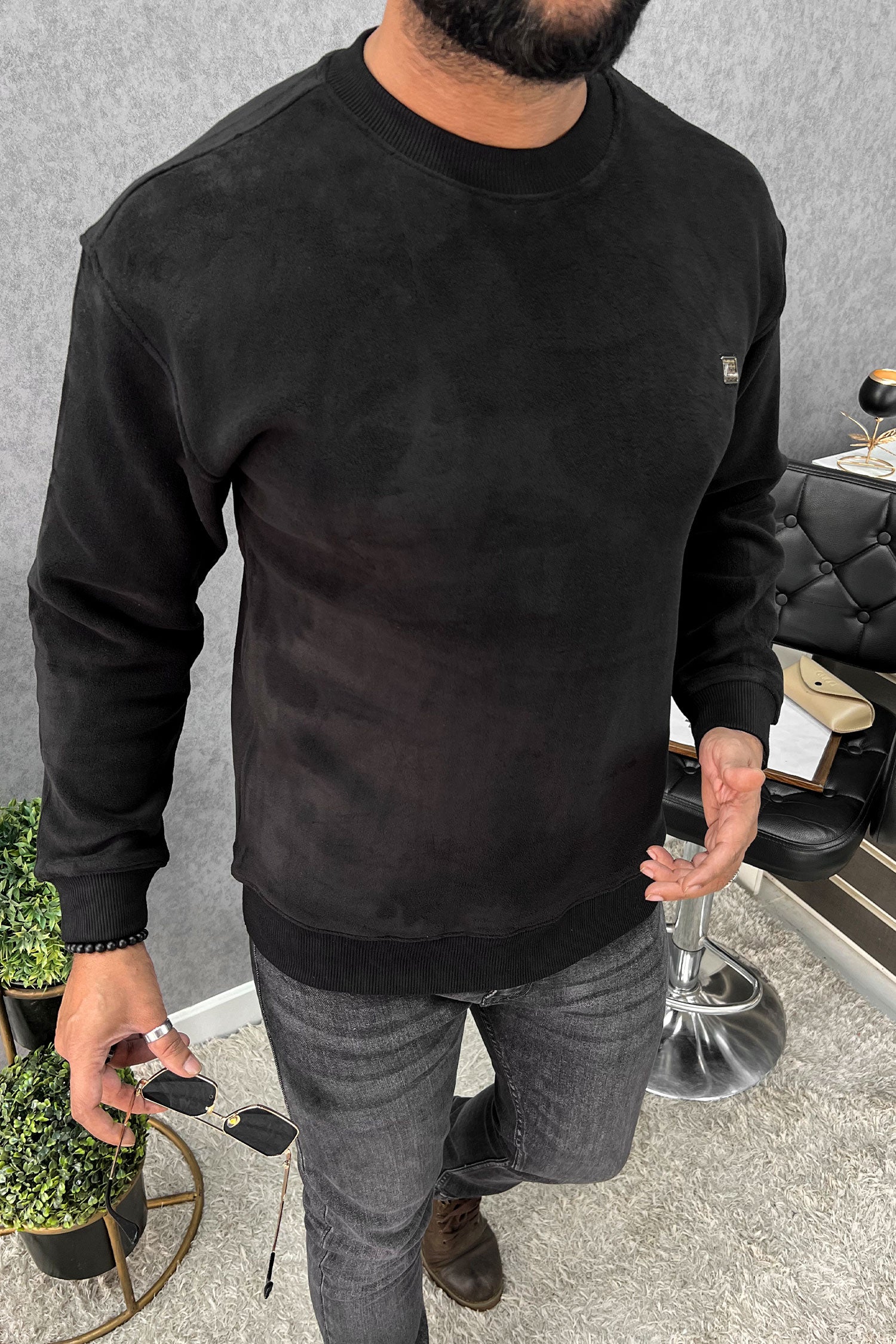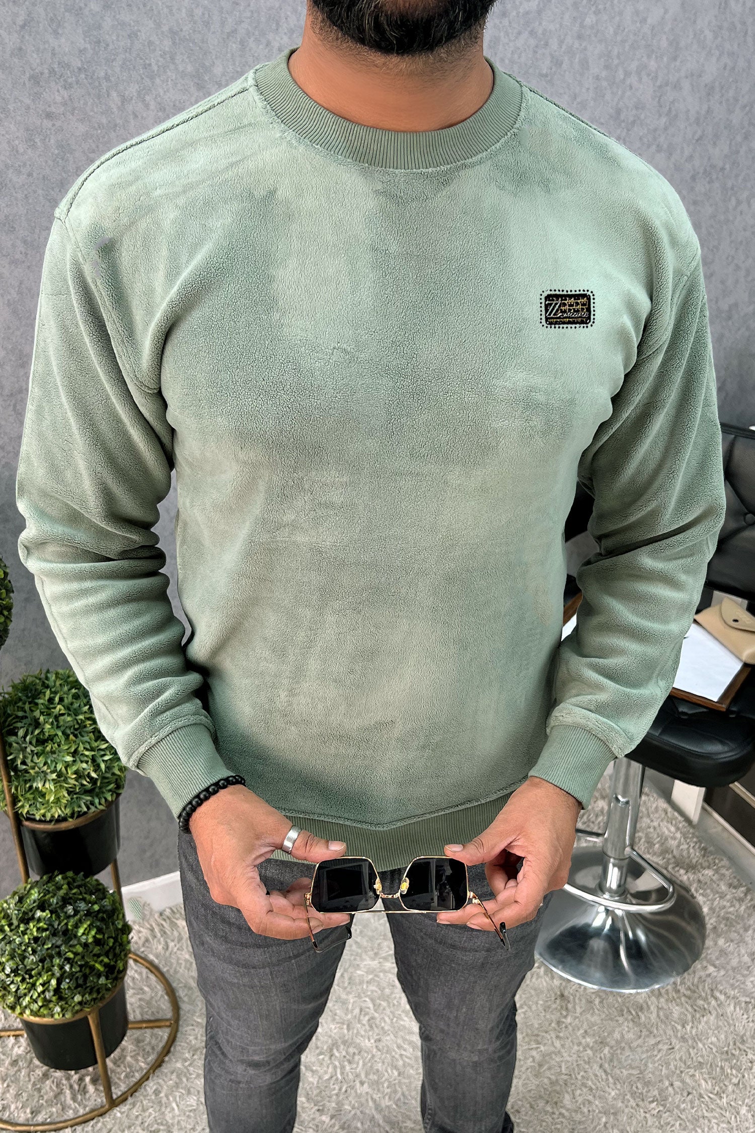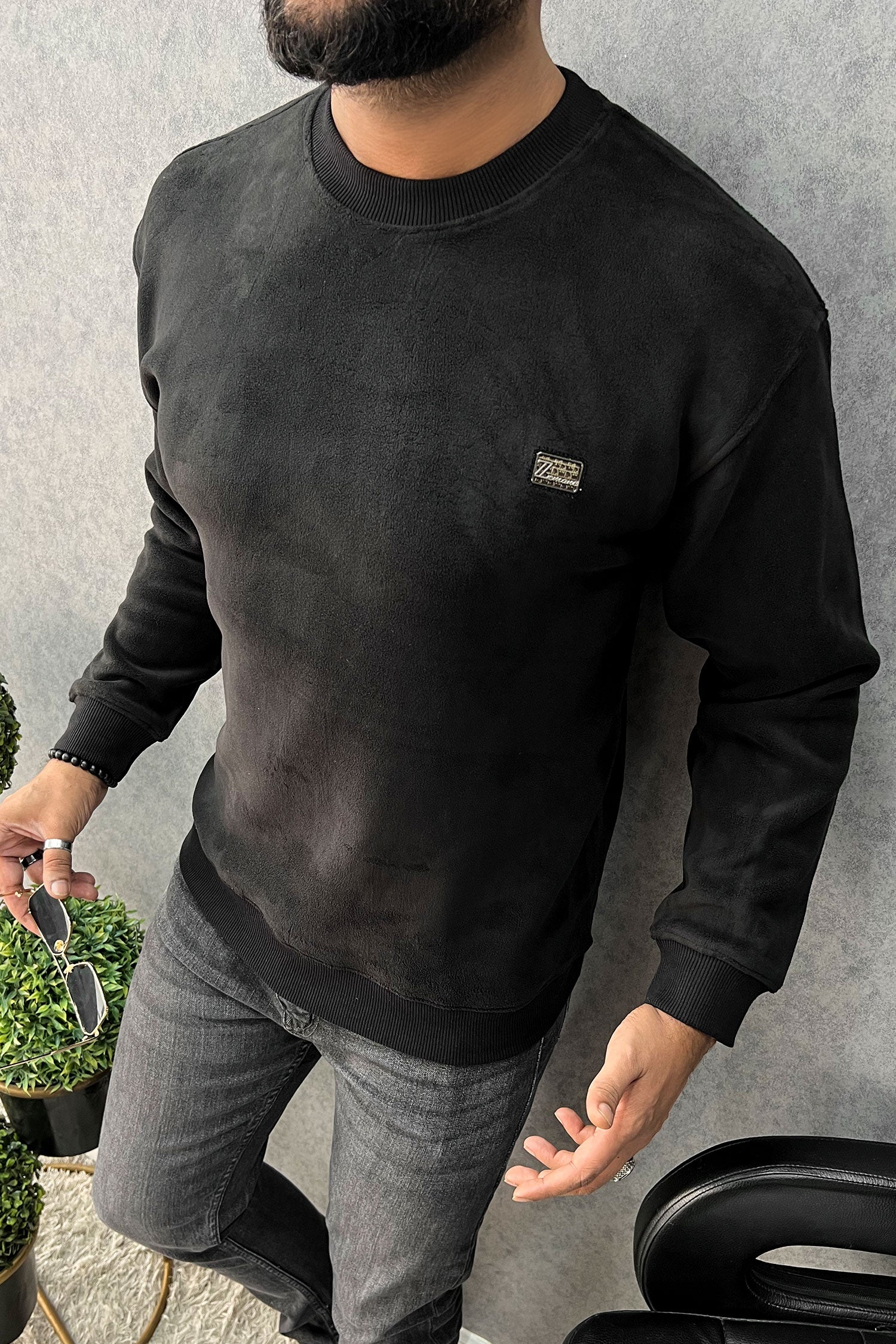 Cozy Plain Round Neck Imported Men's Sweatshirt