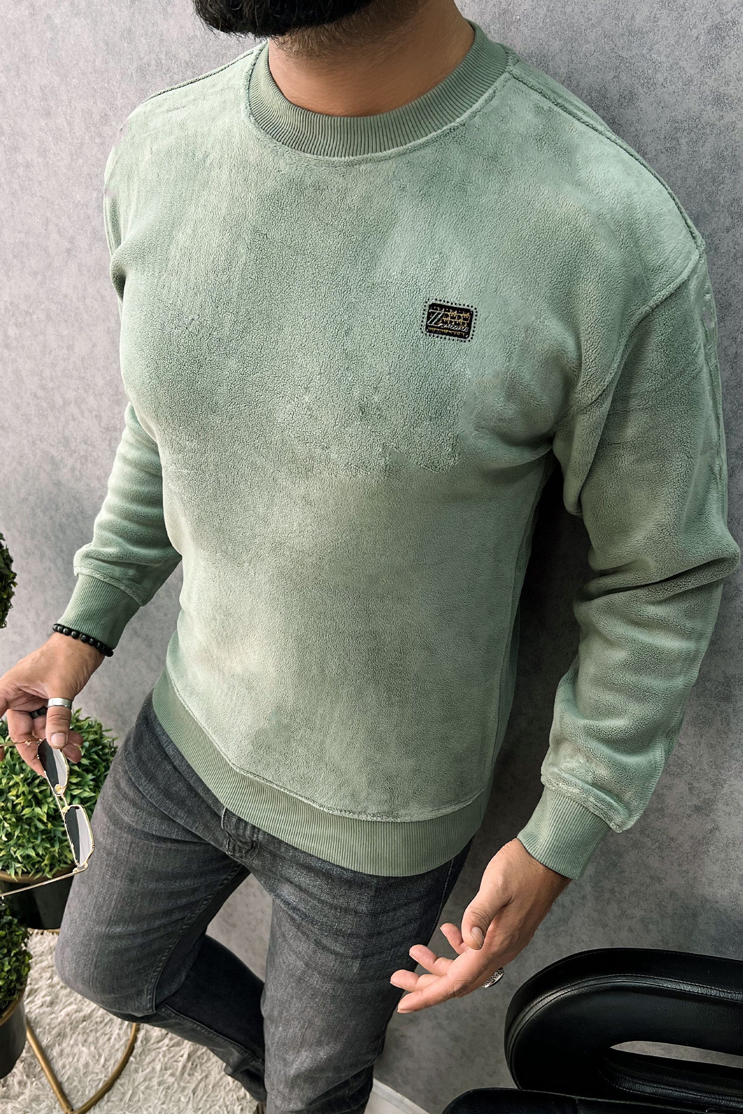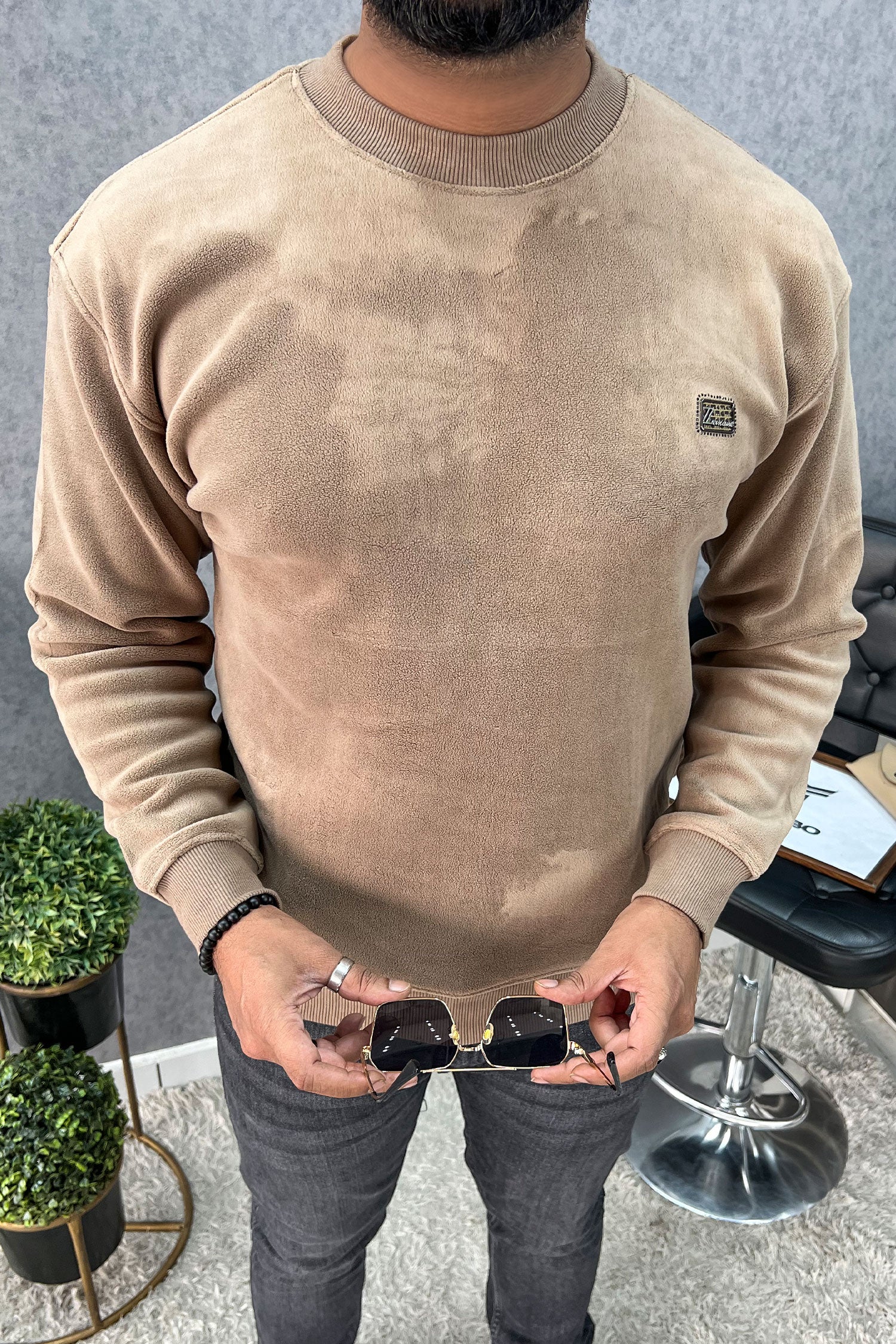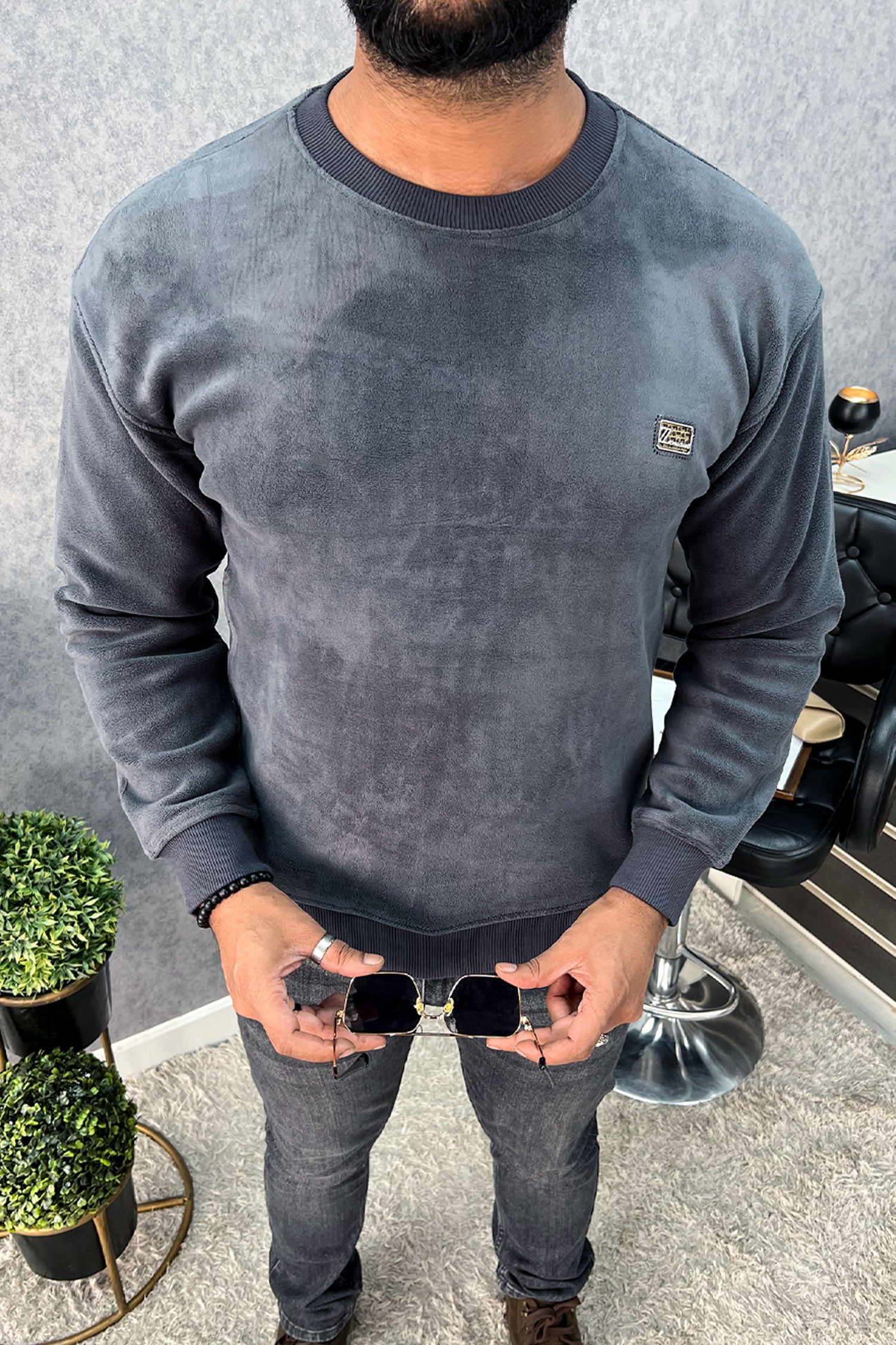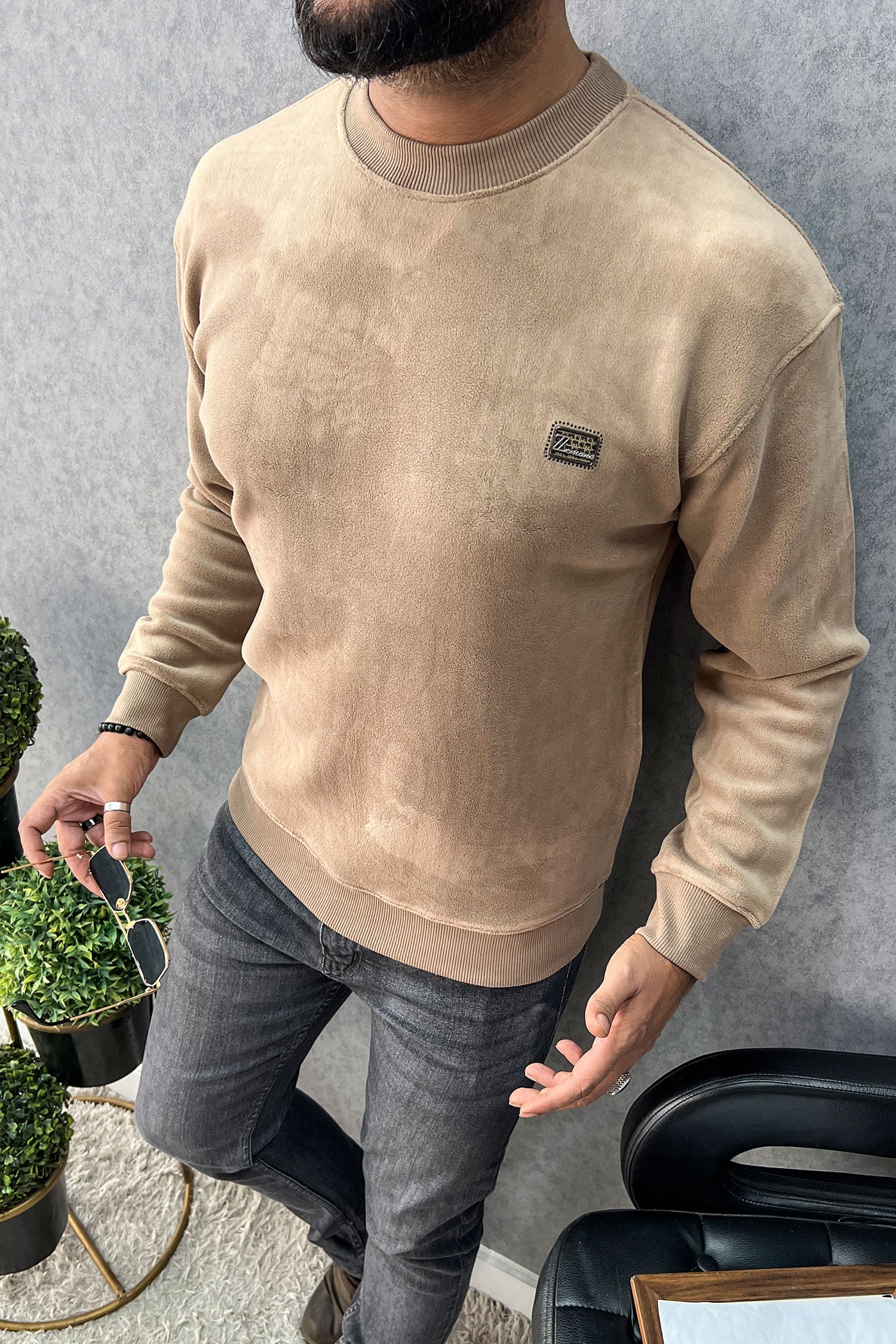 Cozy Plain Round Neck Imported Men's Sweatshirt