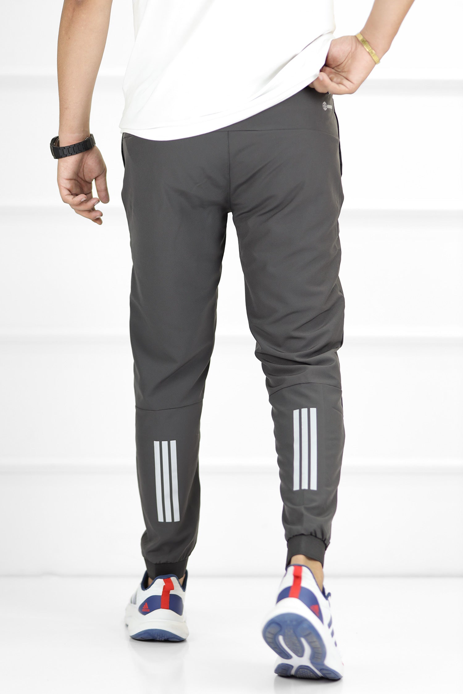 - These branded sports trousers are designed with an elastic waist and grip bottom for the perfect fit.