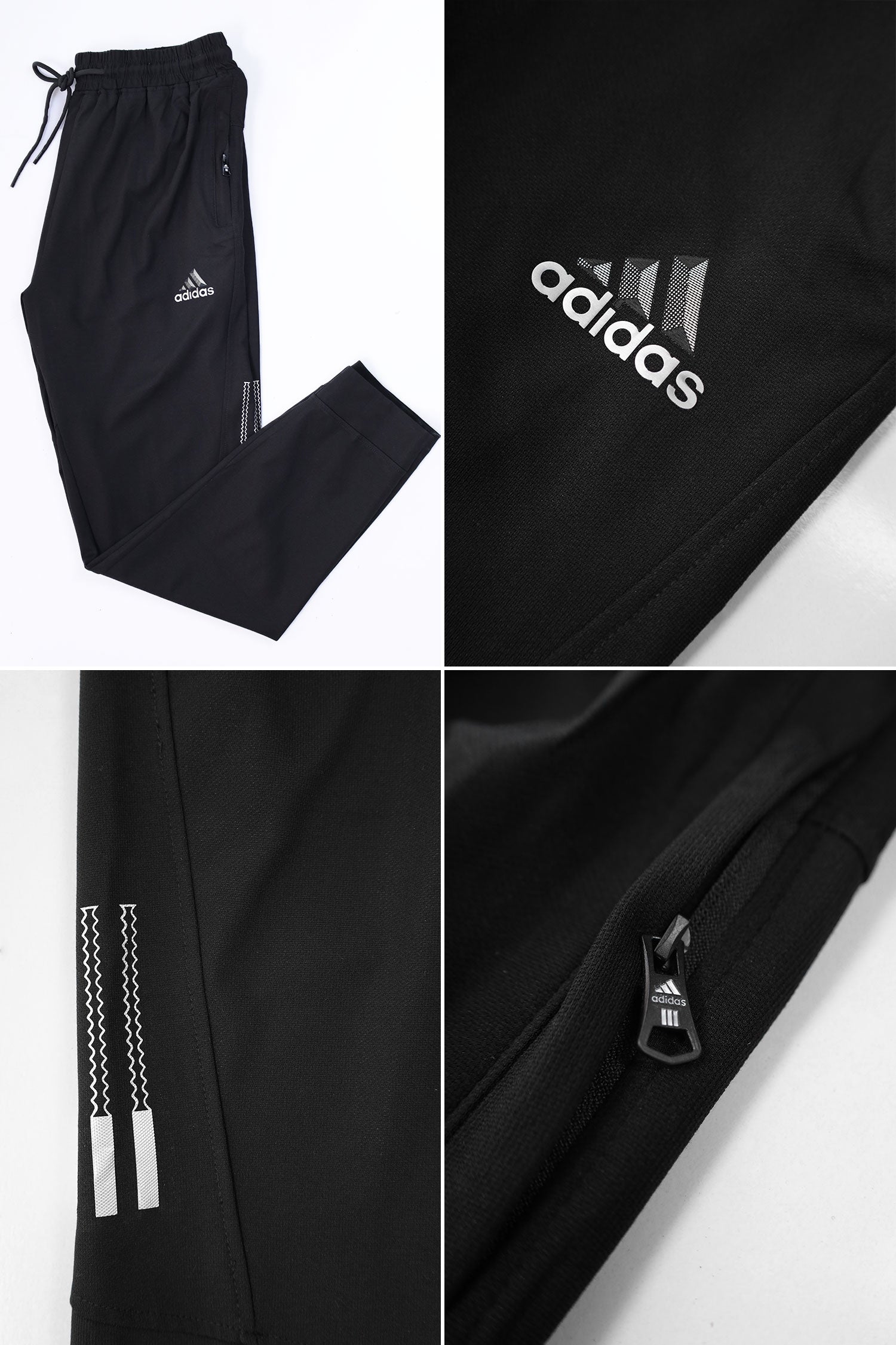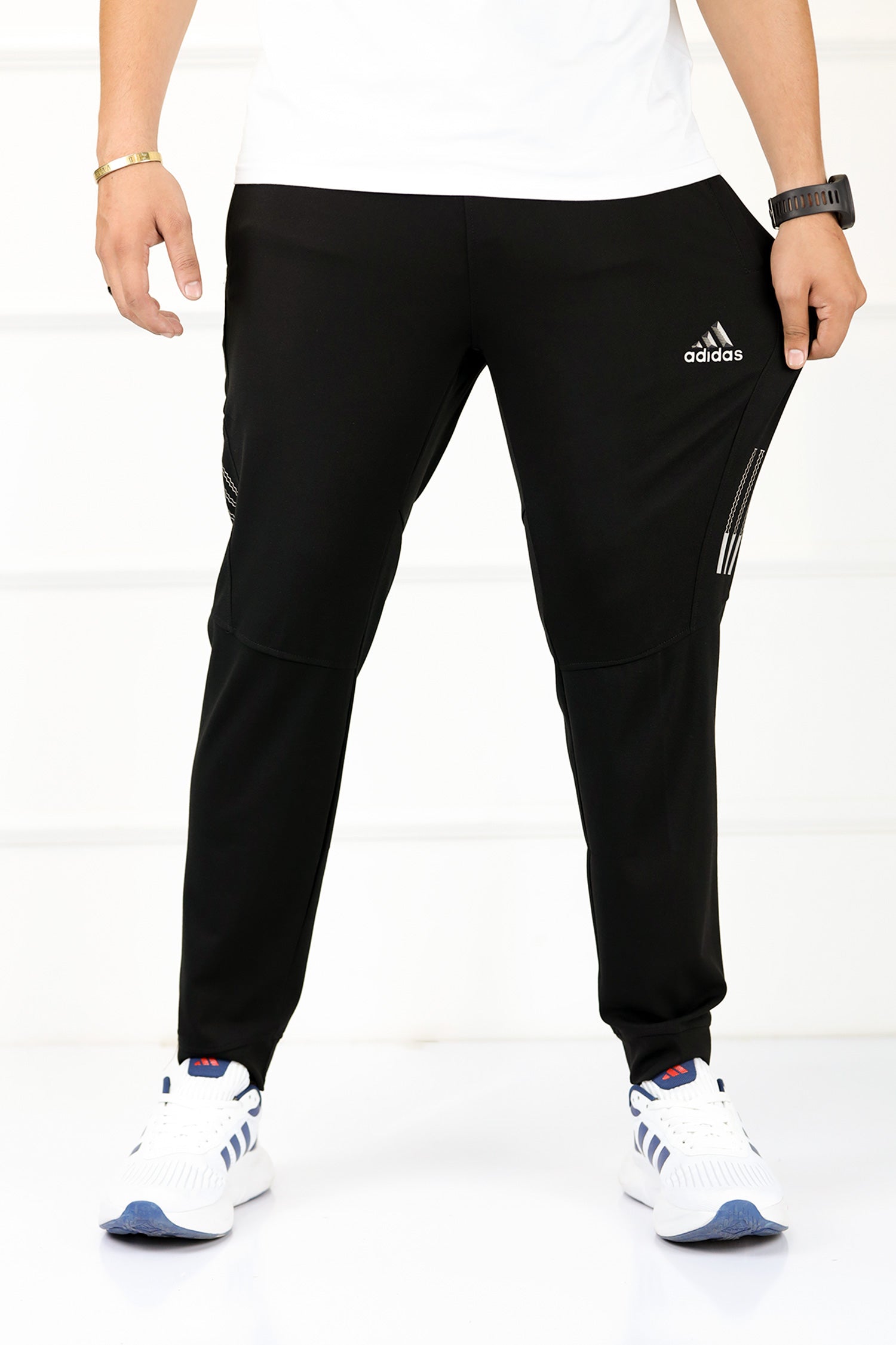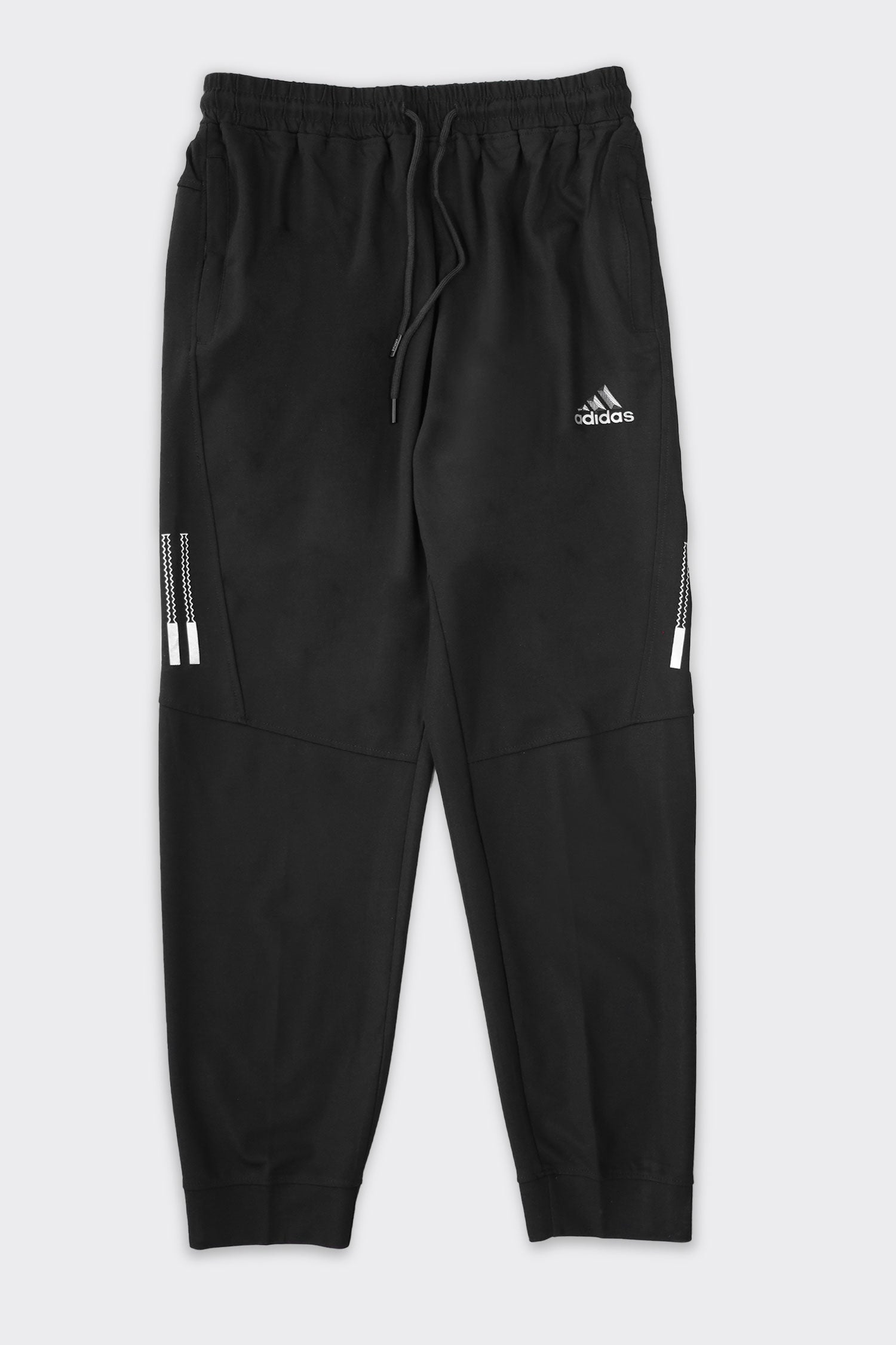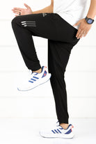 Adds Textured 3 Strip Line Poly Premium Sportswear Trouser in Black