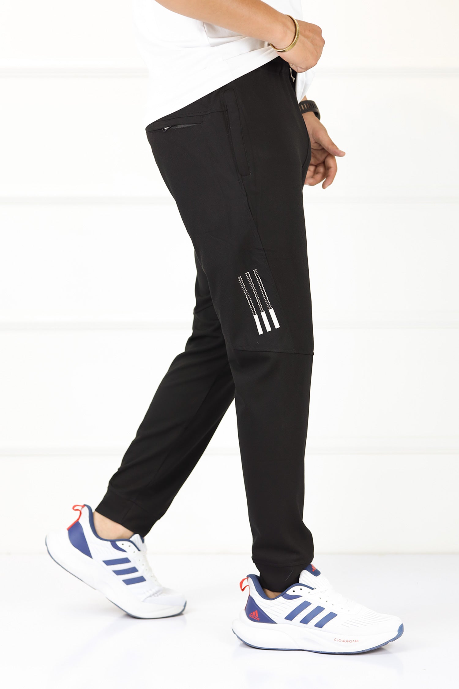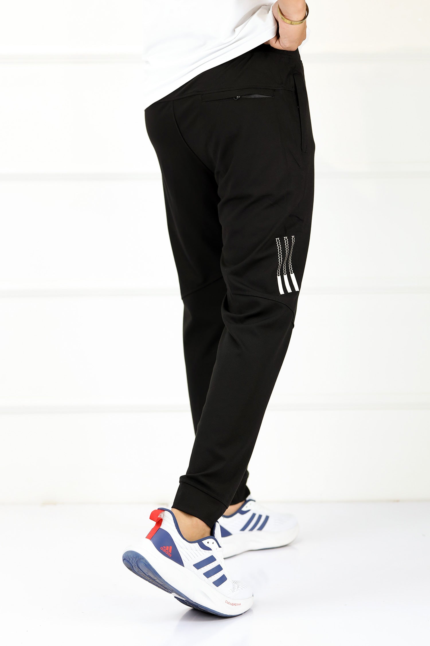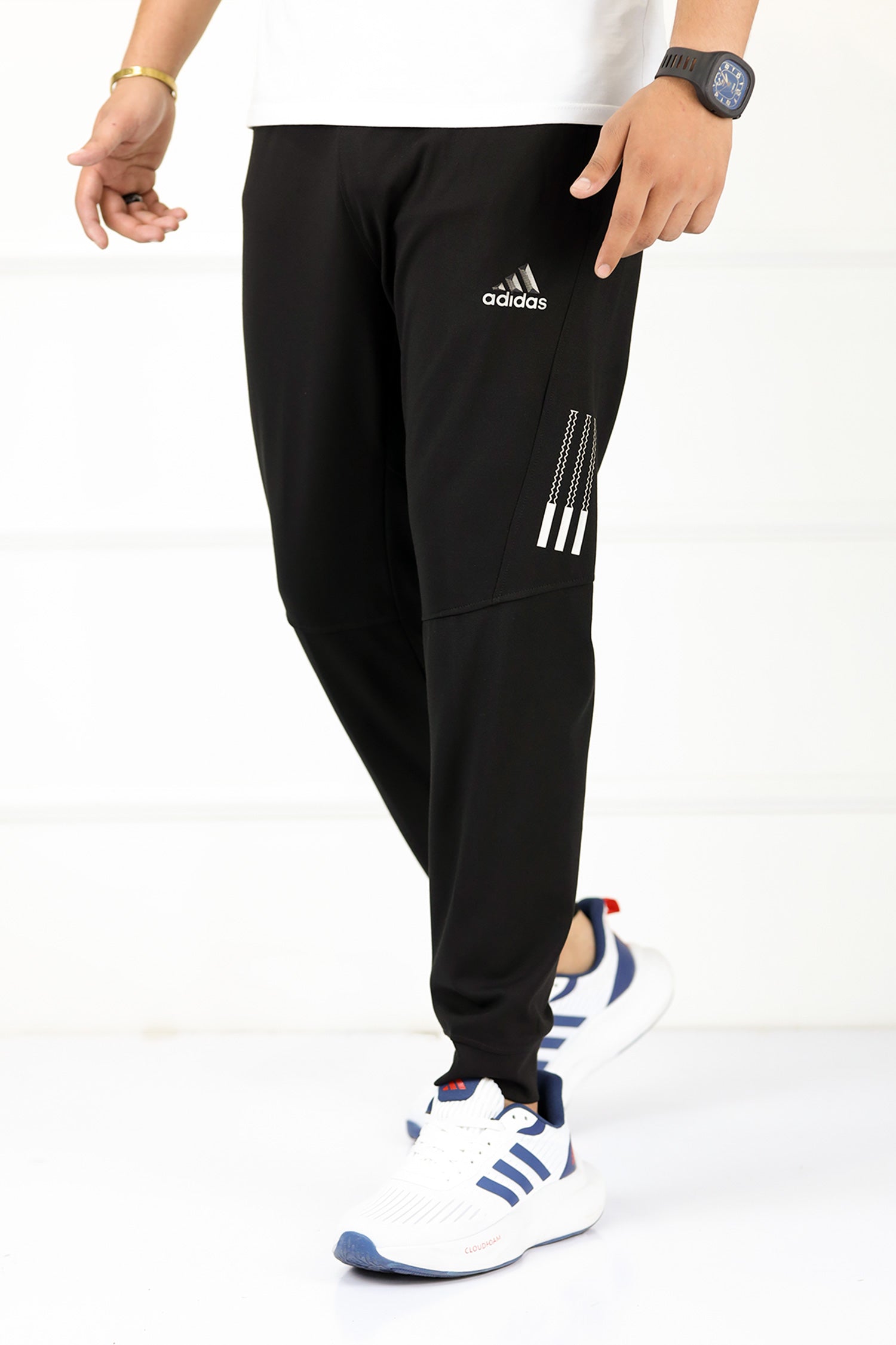 Adds Textured 3 Strip Line Poly Premium Sportswear Trouser in Black