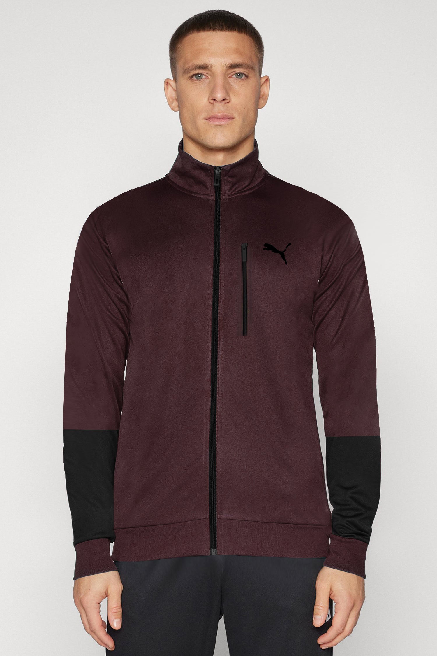Pma Zipper Style Mock Neck Men Zipper Upper in Maroon