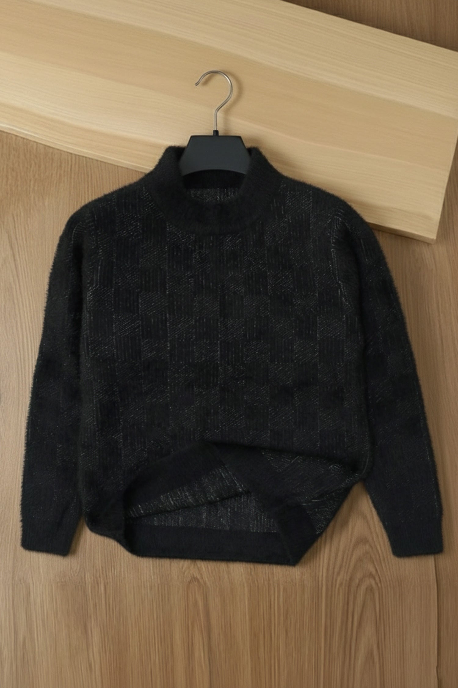Turbo Classic Rabbit Wool Imported Men's Sweater In Black