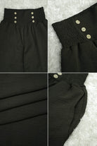 Look sharp while staying comfy in these “Button Treadz” Flapper Trouser! Featuring light weight satin Cotton fabric for maximum breath-ability, elastic waistband and wide legs, you’ll be movin’ and groovin’ in style. With pockets for your trinkets and goodies, they’re sure to be your go to for work or play! Who said looking sharp had to be uncomfortable? Not us!