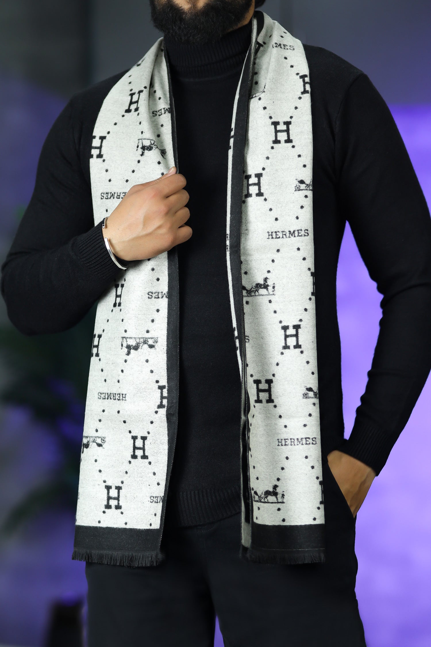 Hrms Pattern Featuring Wool Men Mufflers In Off White