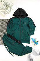 Adds Essential Performance Hooded Unisex Kids Tracksuit In Dark Green&Black