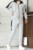 Adds Game Time Mock Neck Hoodie Zipper Tracksuit In Light Grey
