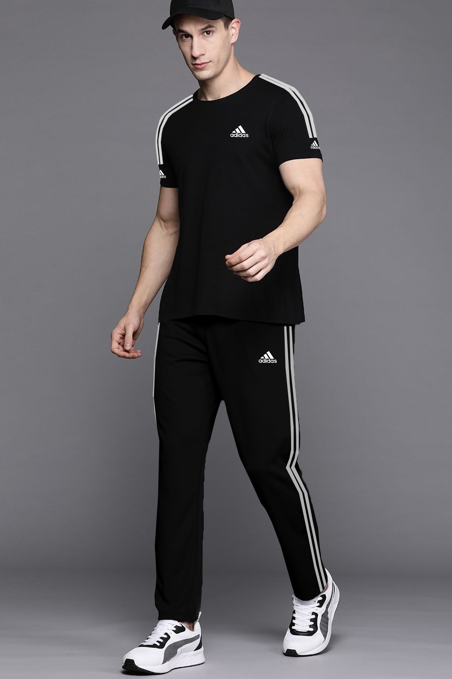 Adds Premium Tri-Line Quick-Dry Tracksuit In Black