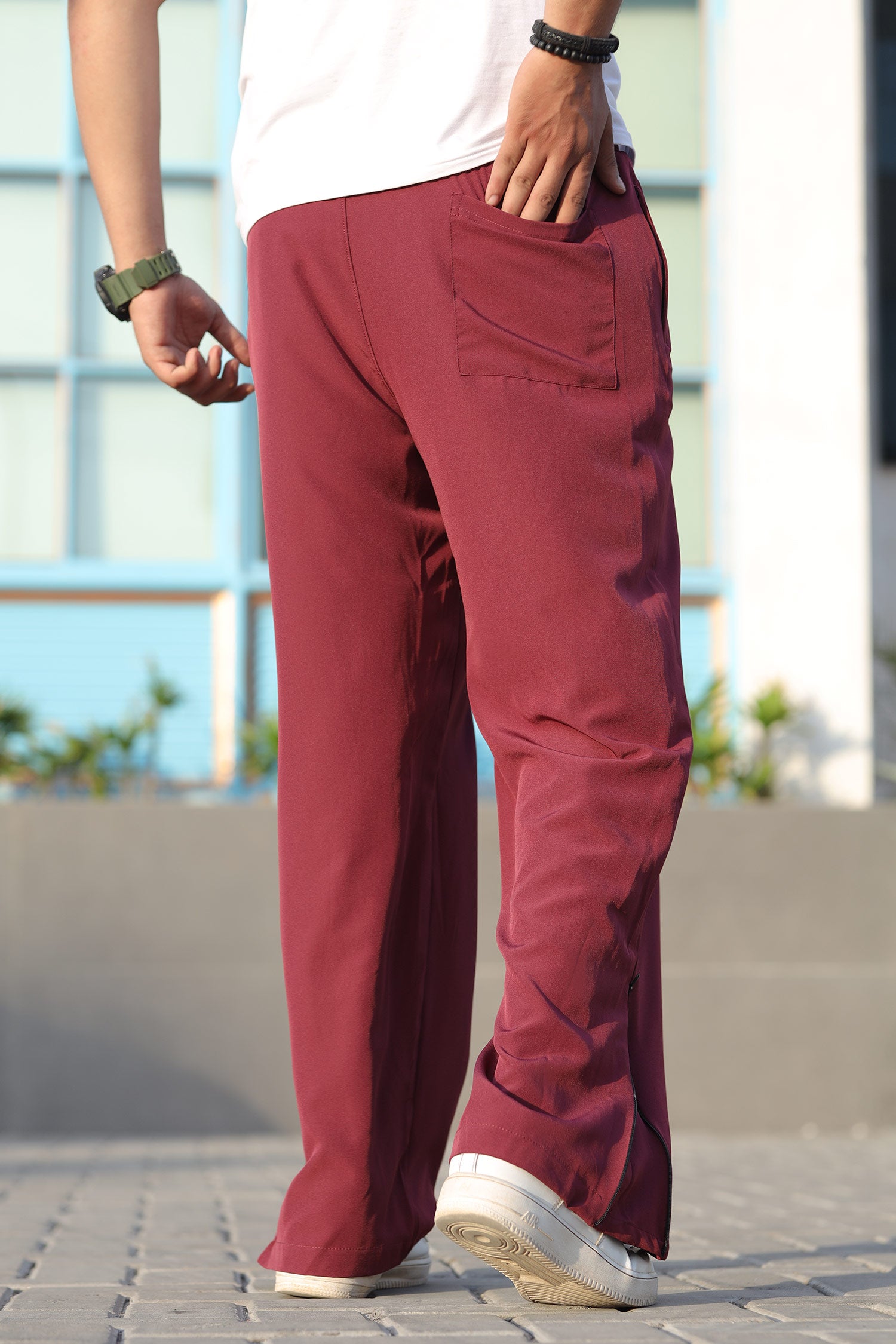 - These Imported Loose Bottom sports trousers are designed with an elastic waist.