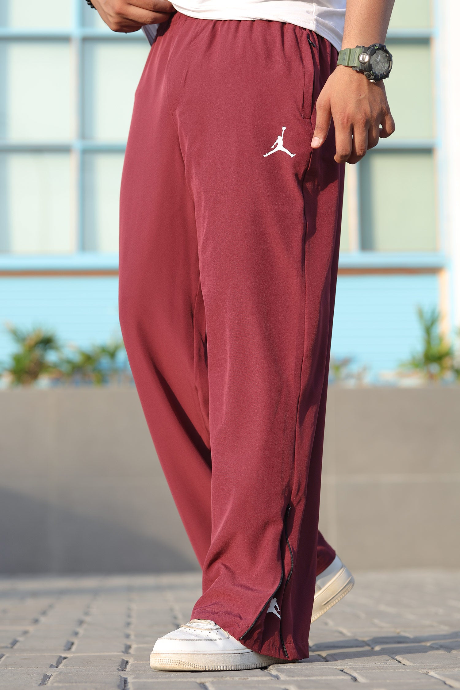 Jrdn 'Airborne' Micro-Tech Loose-Bottom Trouser In Maroon