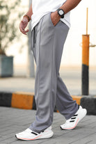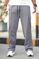Plain Stripe Line Loose Bottom Trouser In Grey