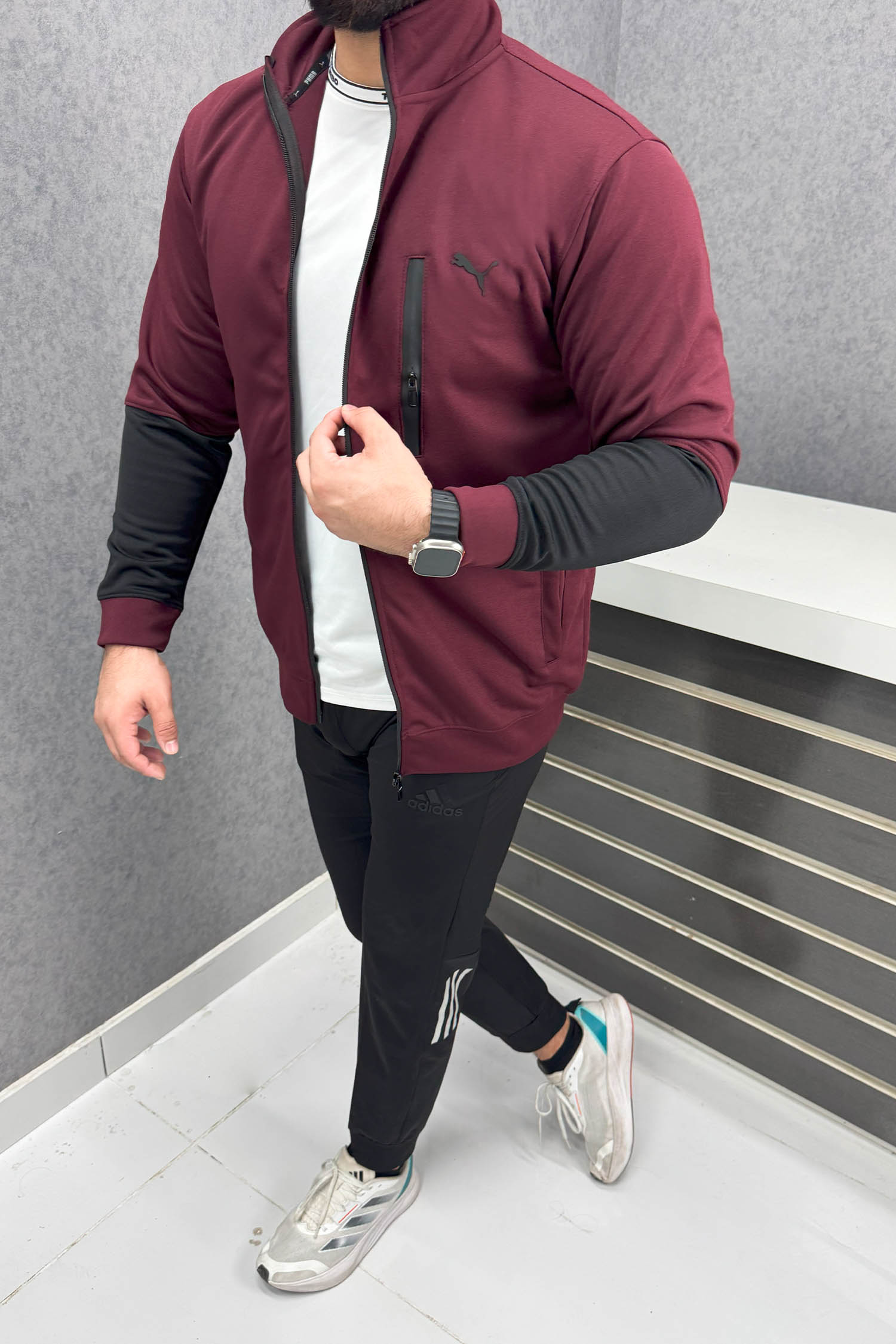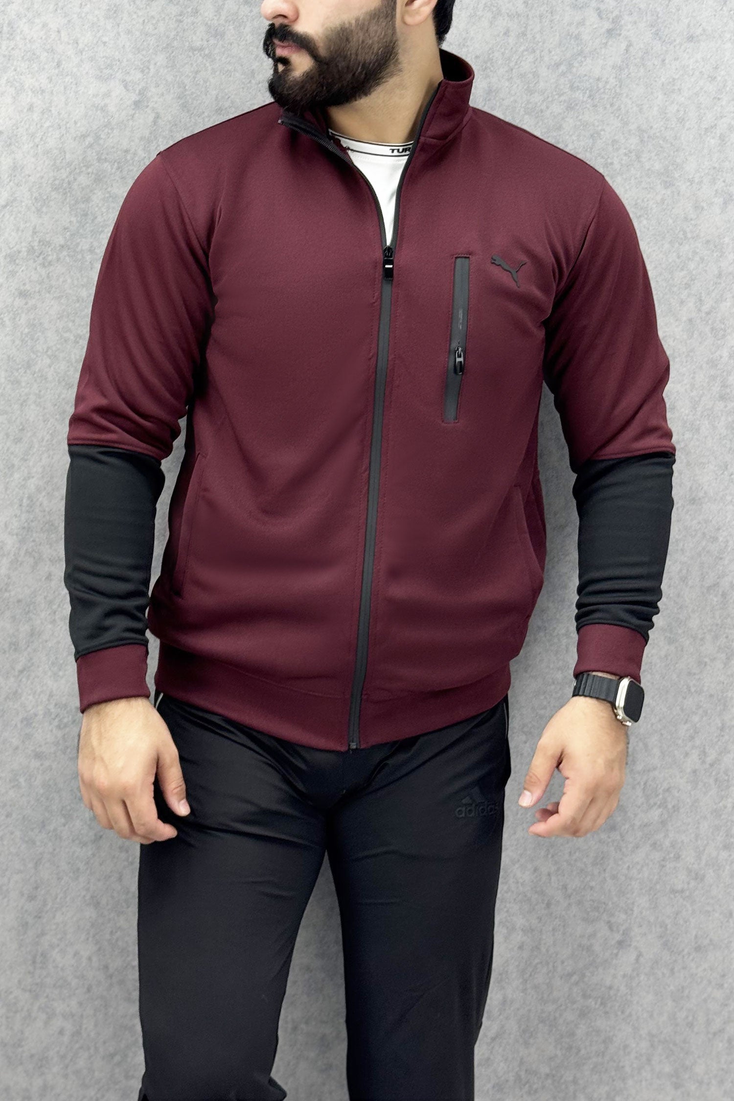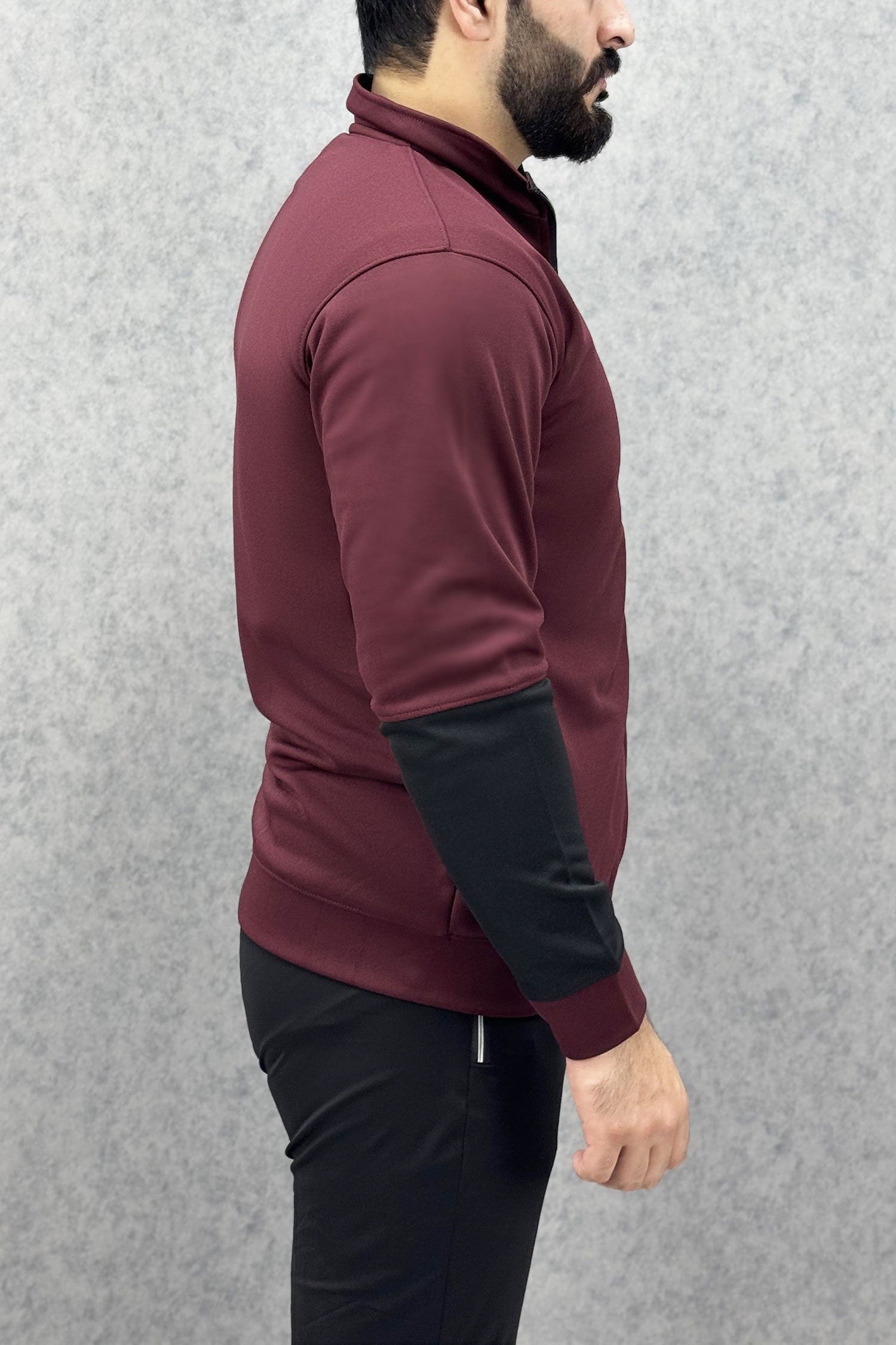 Pma Zipper Style Mock Neck Men Zipper Upper in Maroon
