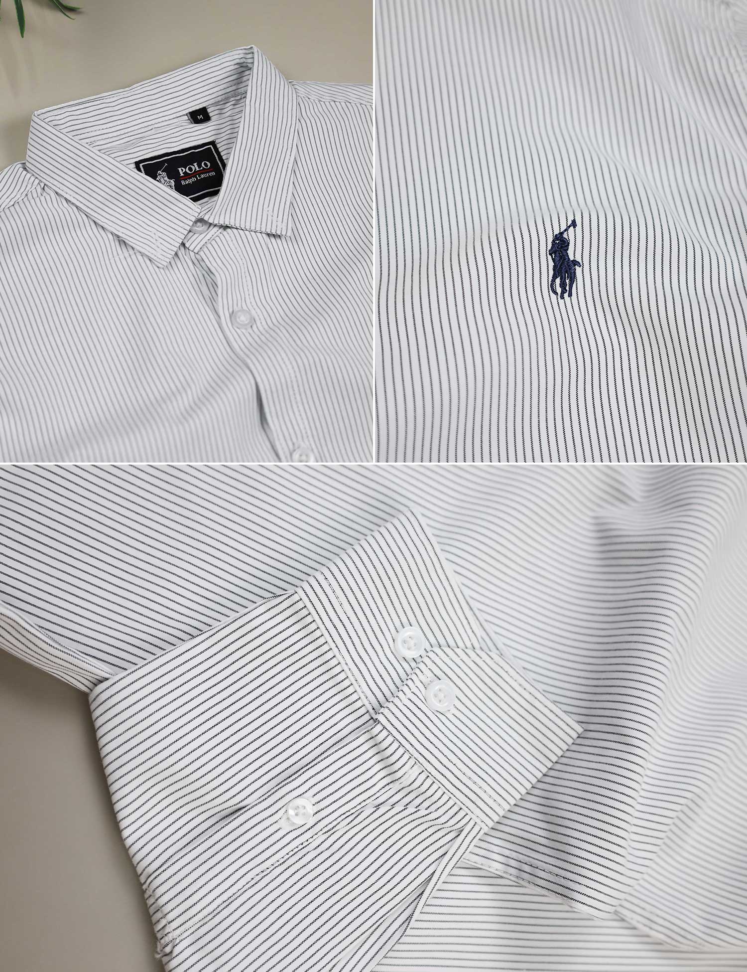 Polo Rph Lren Stripe Poplin Cotton Casual Shirt In Black&White