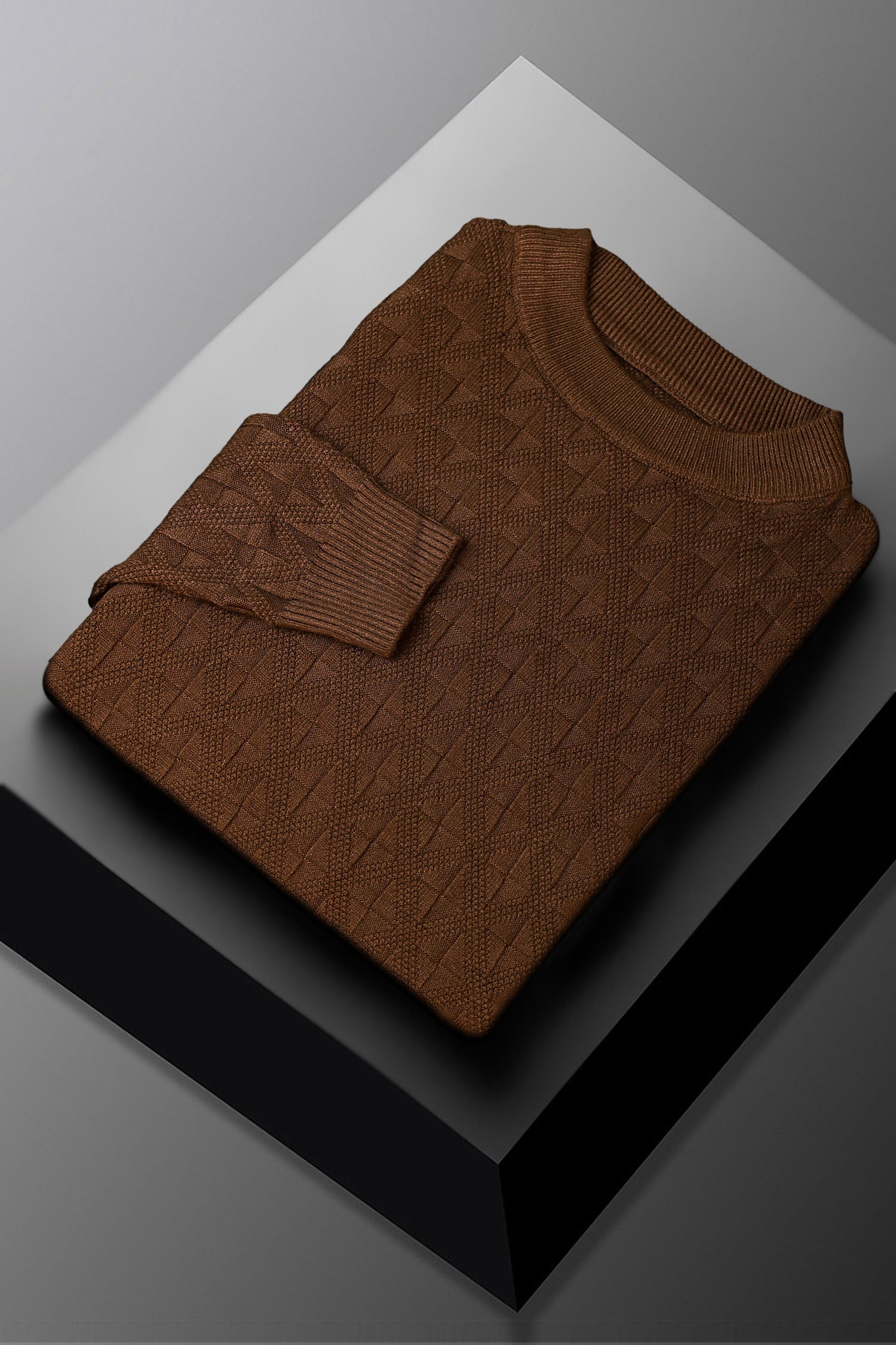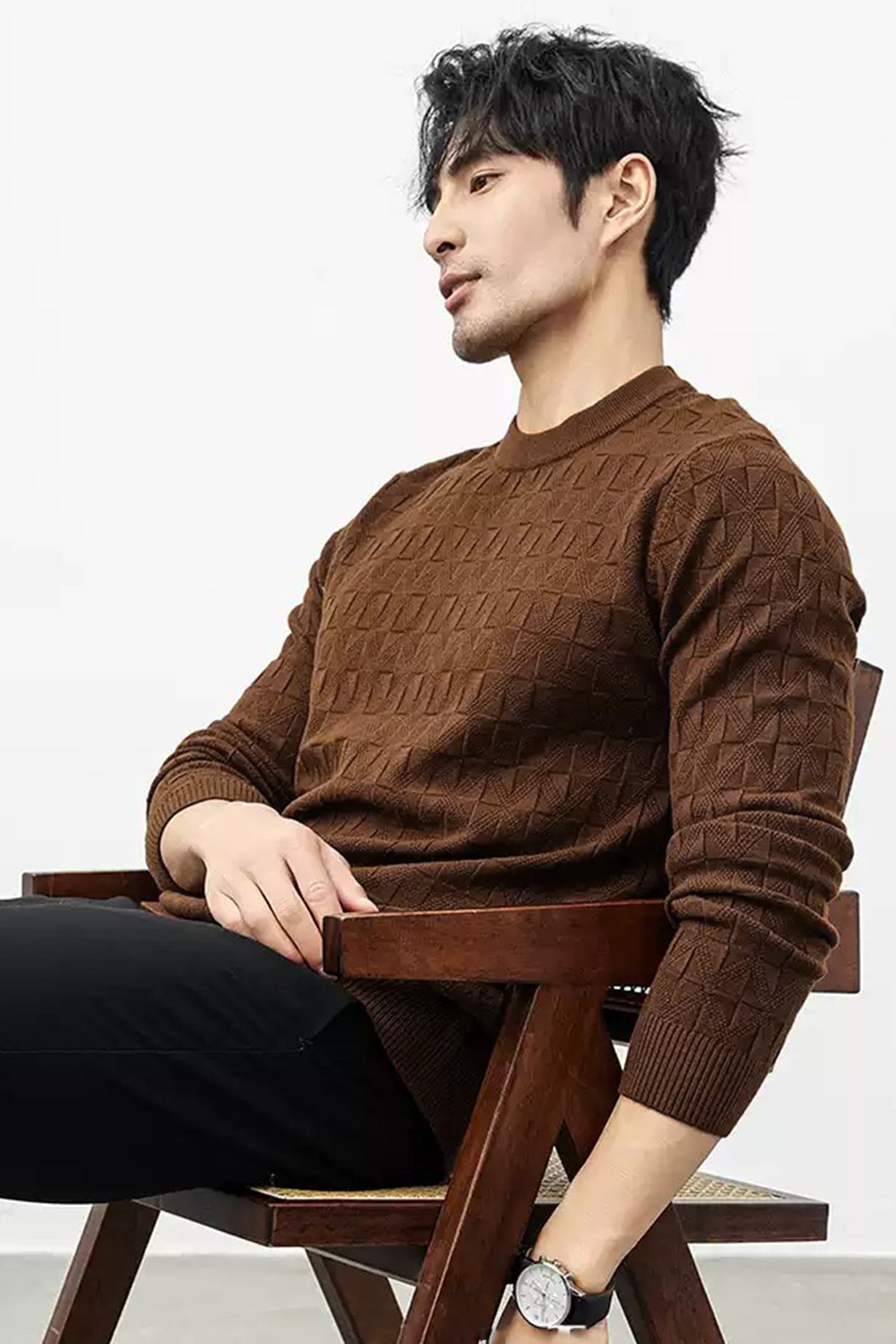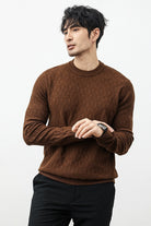 Power Look Patterened Crew-Neck Imported Men's Sweater In Choclate