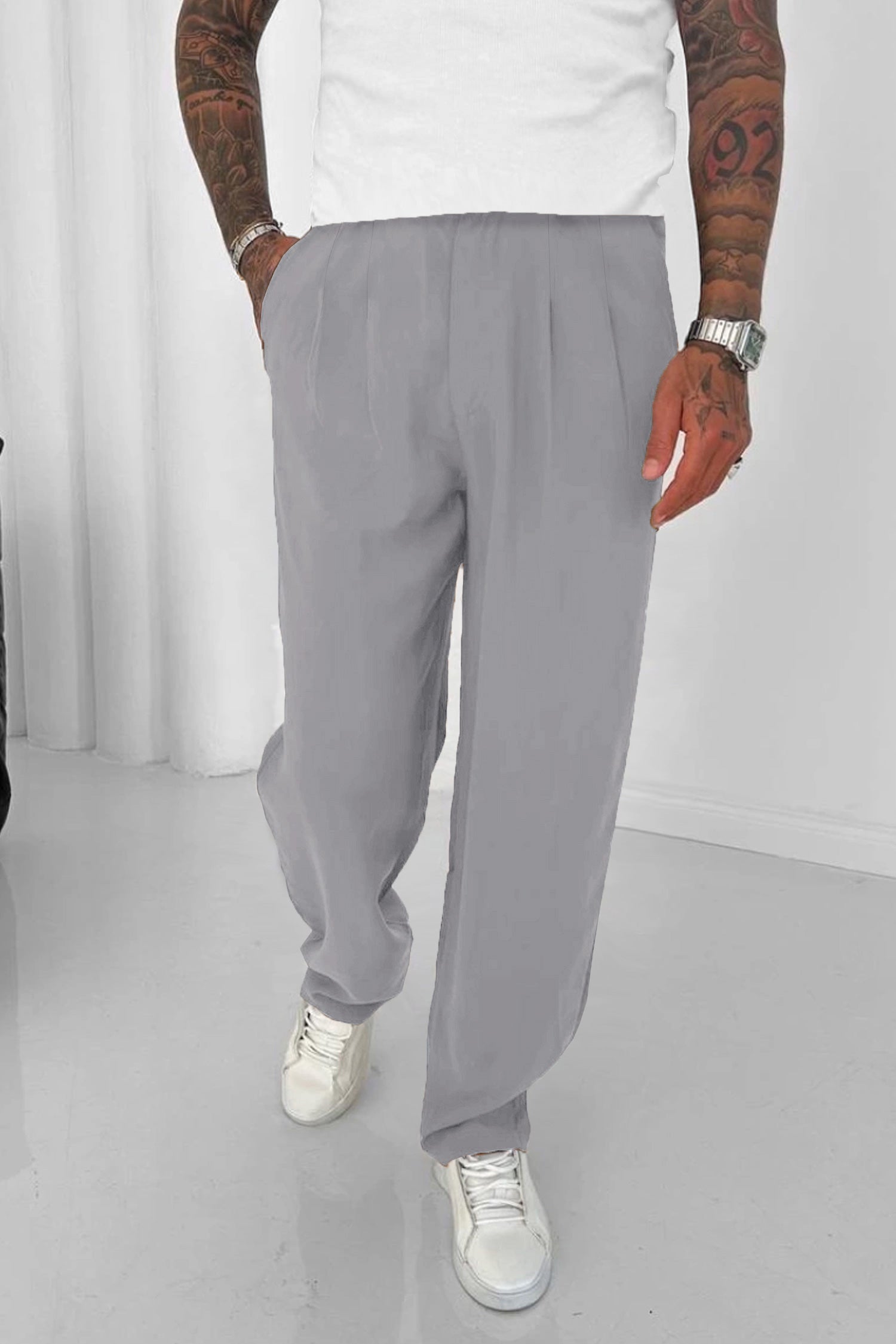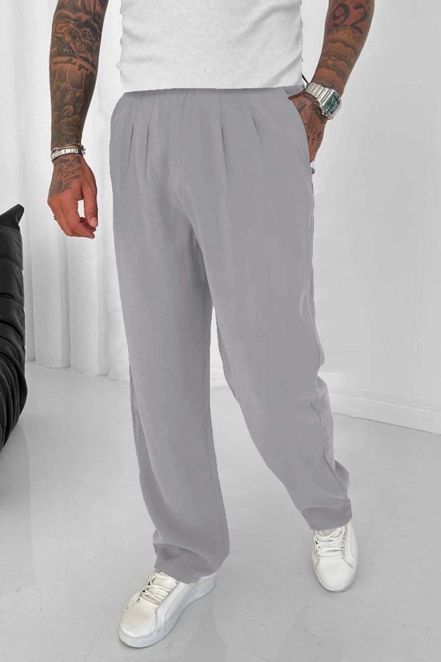 Relaxed Straight Baggy Loose Bottom Trouser In Gray