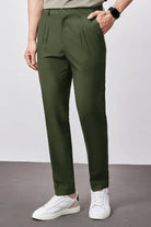 Double Plate Men's Carrot Fit Cotton Pant In Olive
