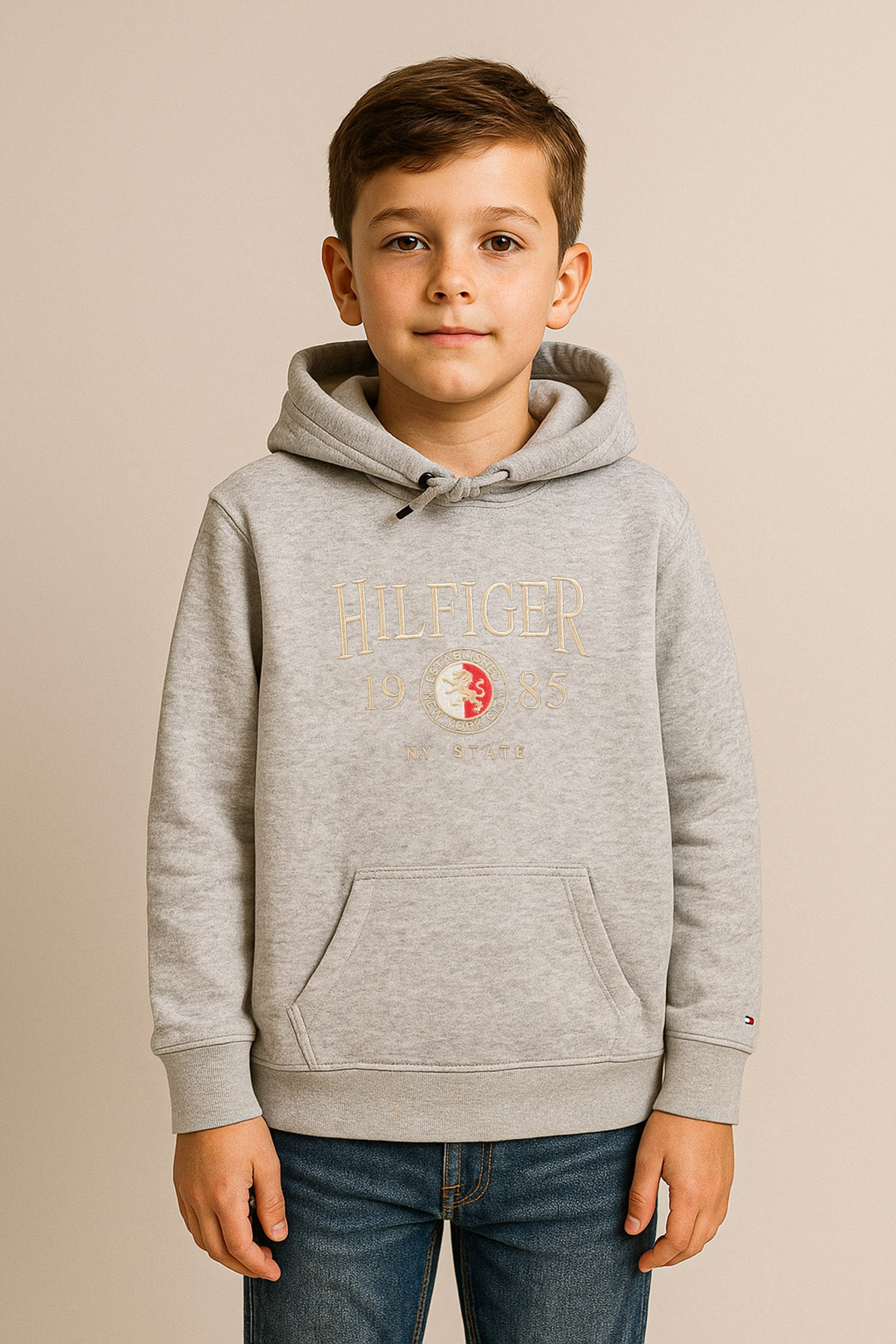 Tmy Hlfgr Icon Embroidered Younger Kids Hoodie In Slate Grey