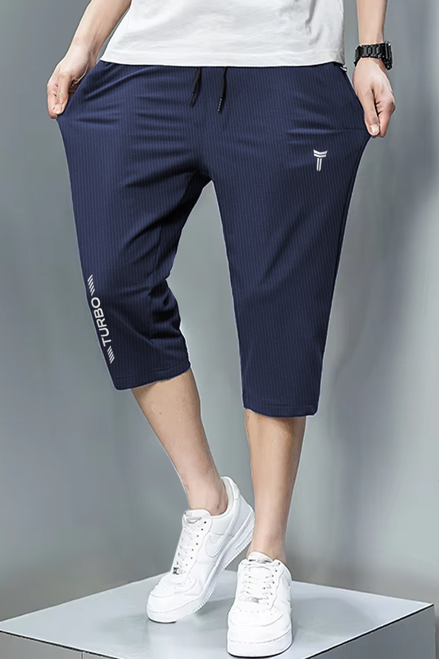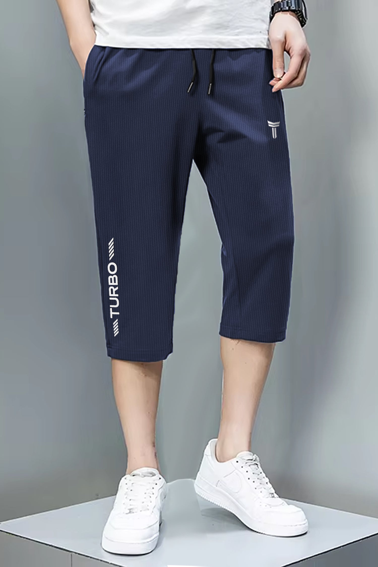 TRB Design Front Logo Print Men Shorts In Navy Blue