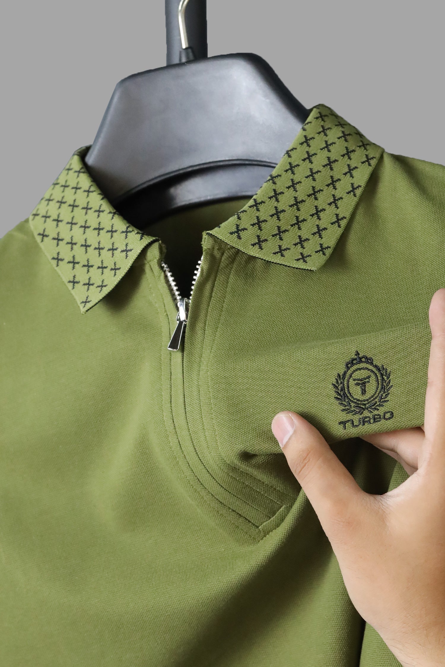 Turbo Abstract Zip Collar Men's Polo Shirt In Olive