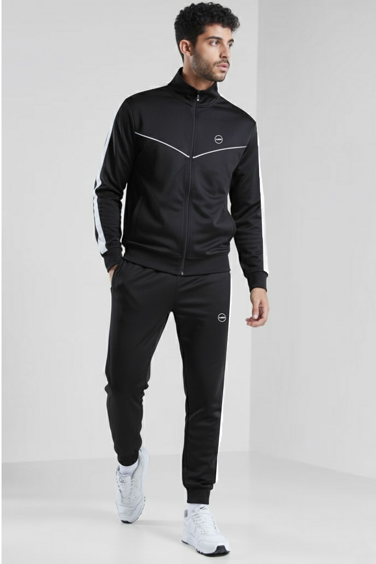Turbo Athletic Runner Panelled Zipper Tracksuit In Black