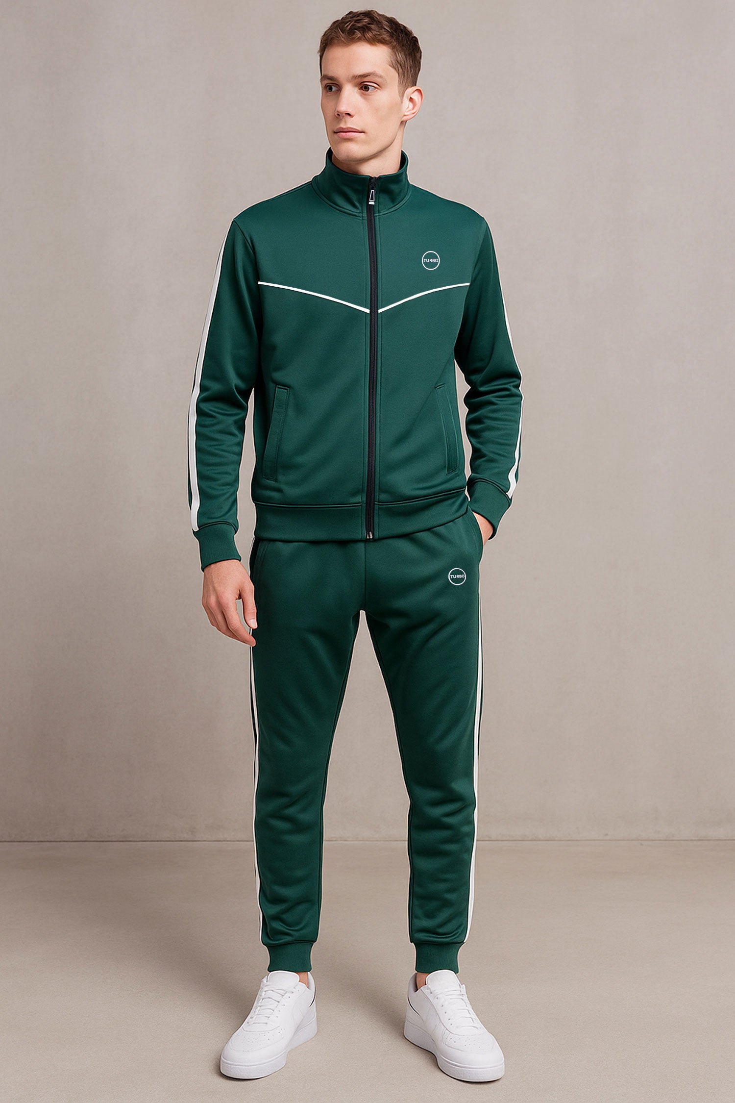 Turbo Athletic Runner Panelled Zipper Tracksuit In Mid Green