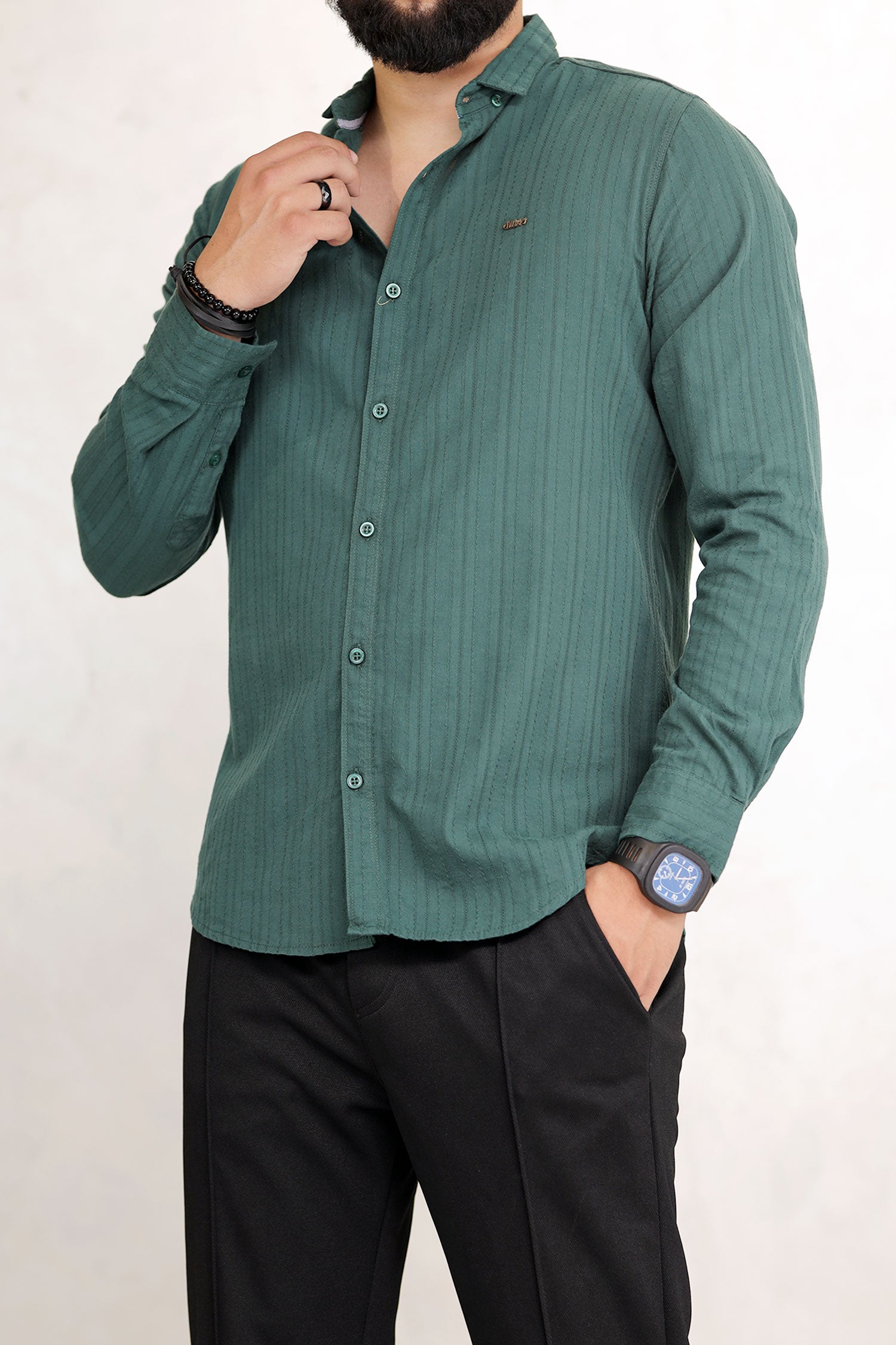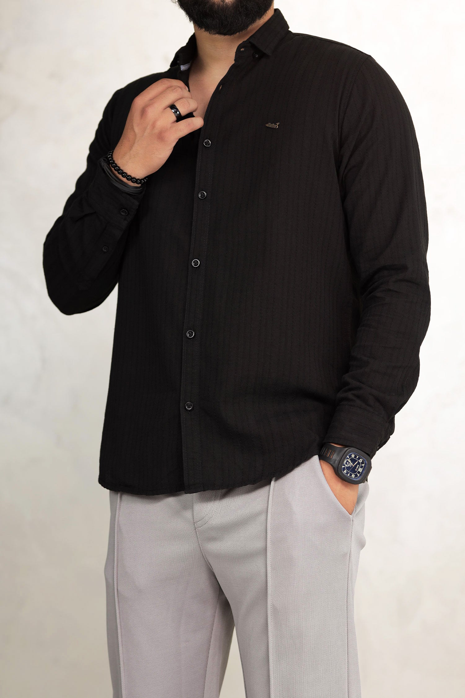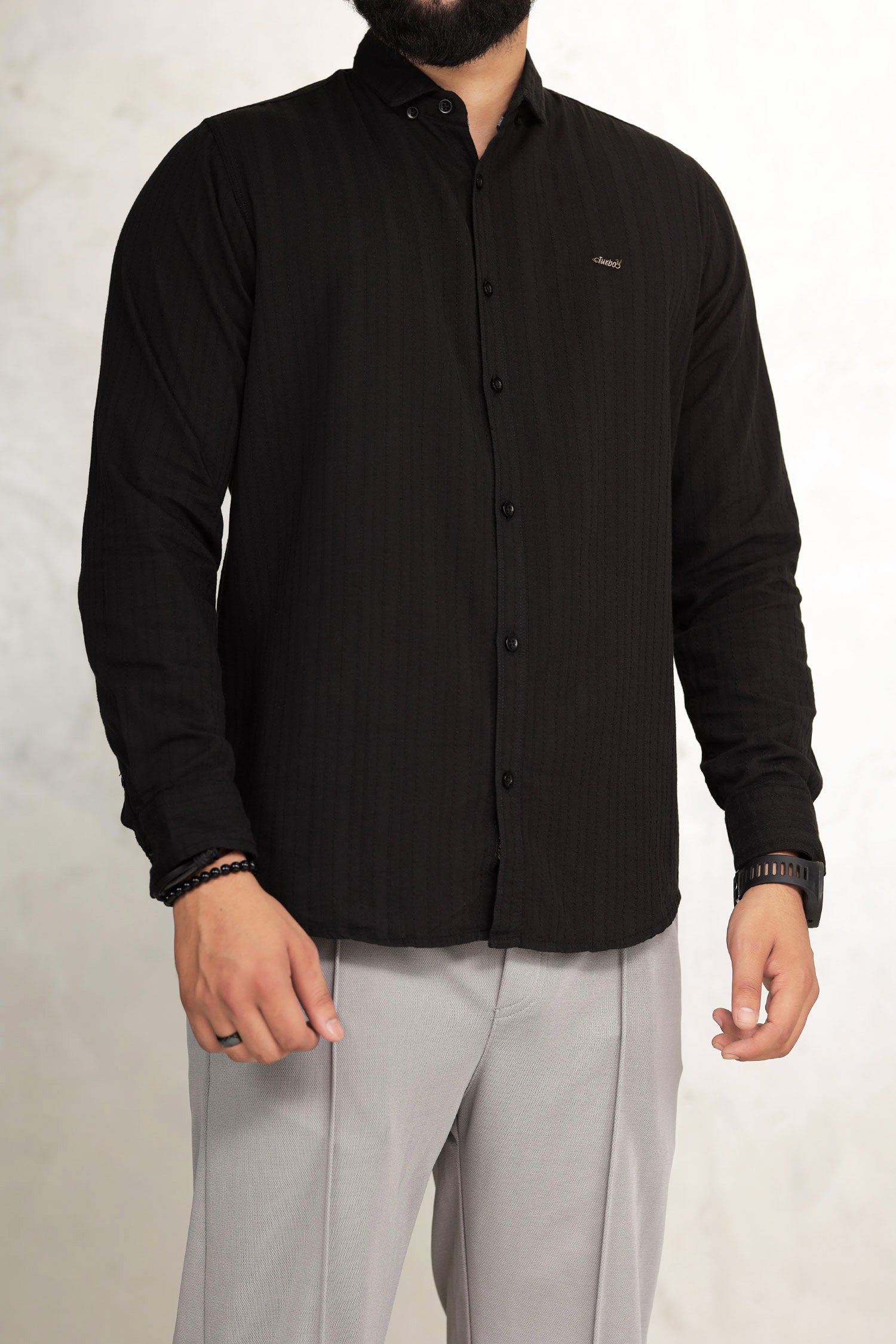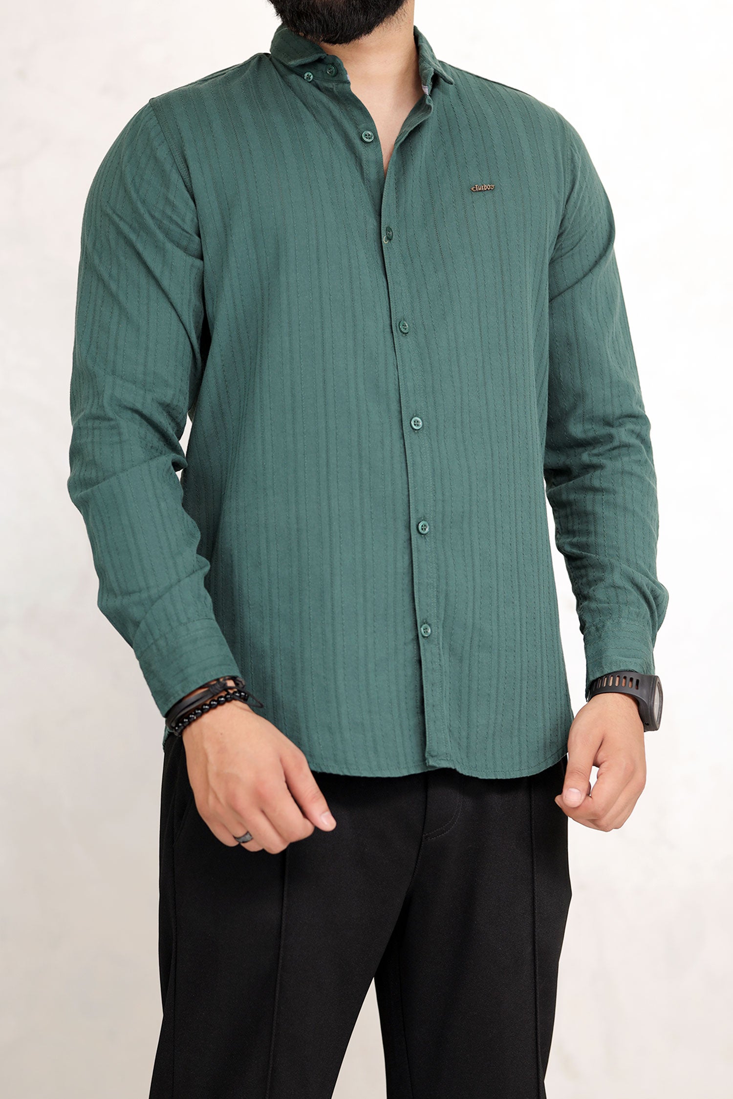Turbo Billy Textured Knit Long Sleeve Cotton Casual Shirt