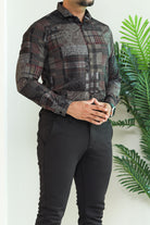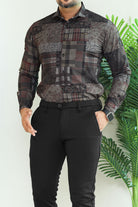 Turbo Checkered Crown Long Sleeve Cotton Casual Shirt In Charcoal Black