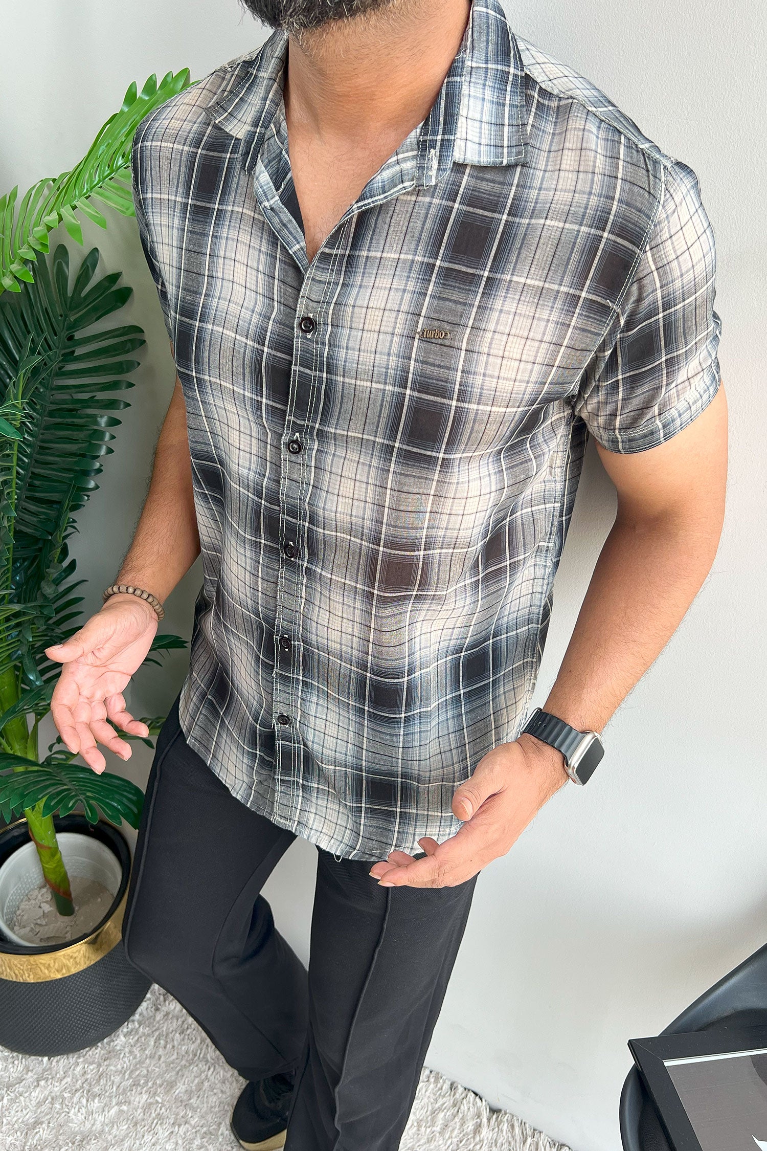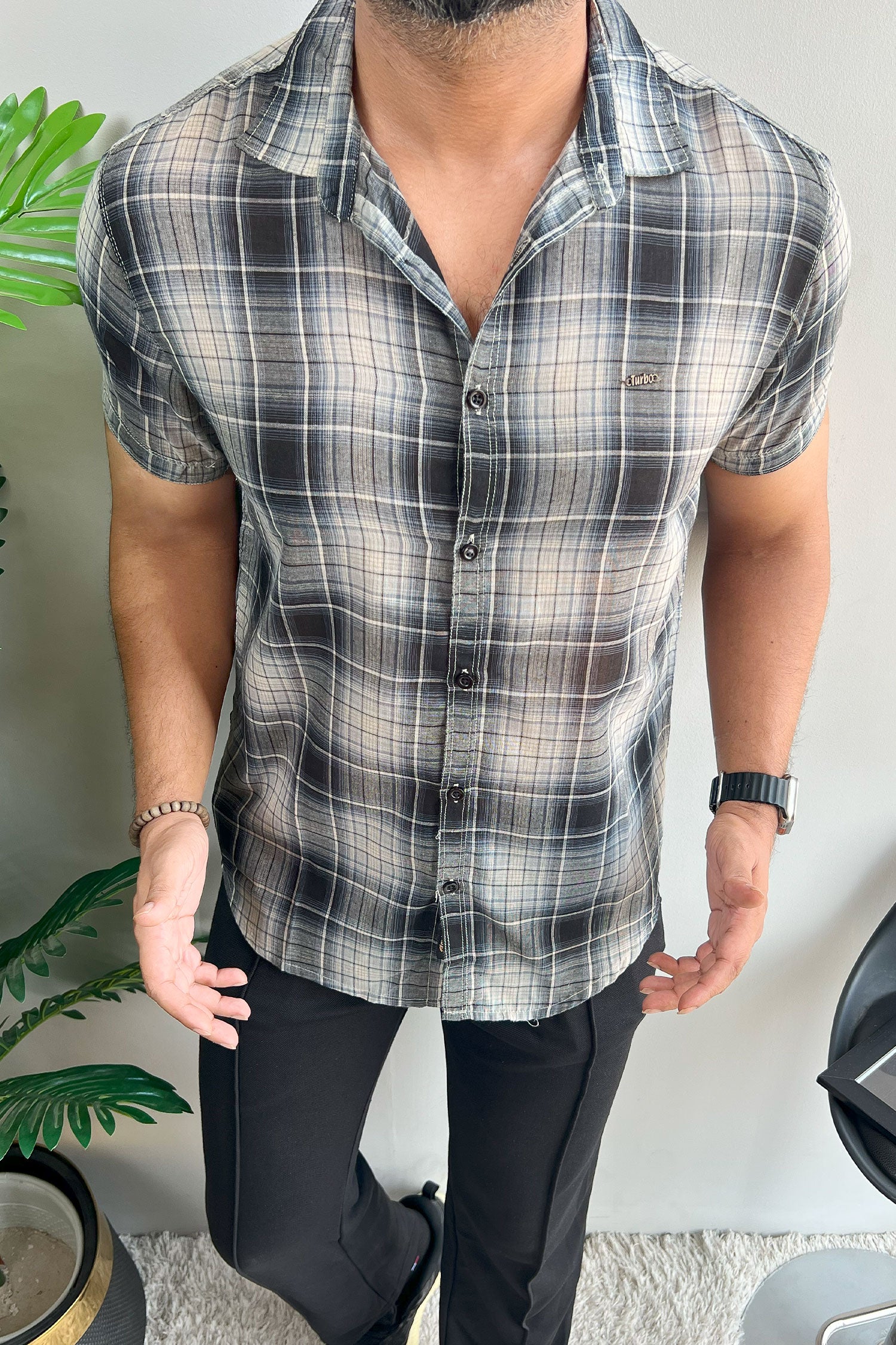 Turbo Classic Pattern Comfort Casual Shirt In Charcoal Black