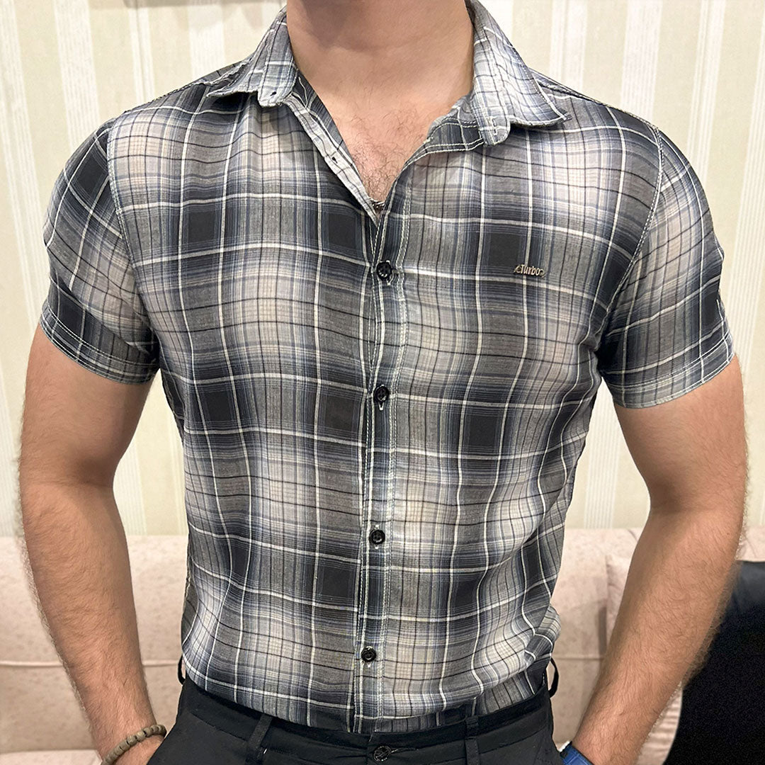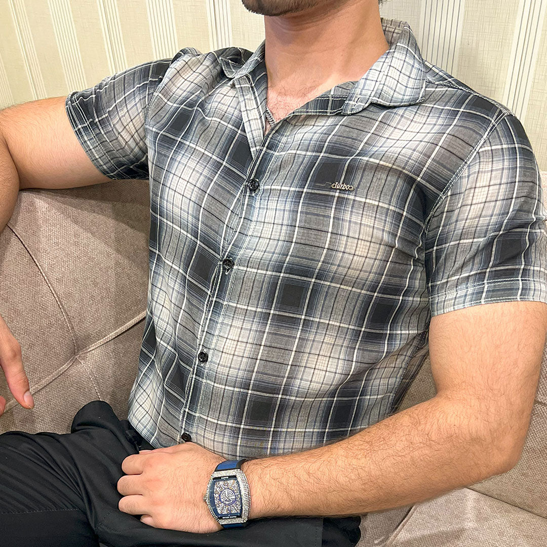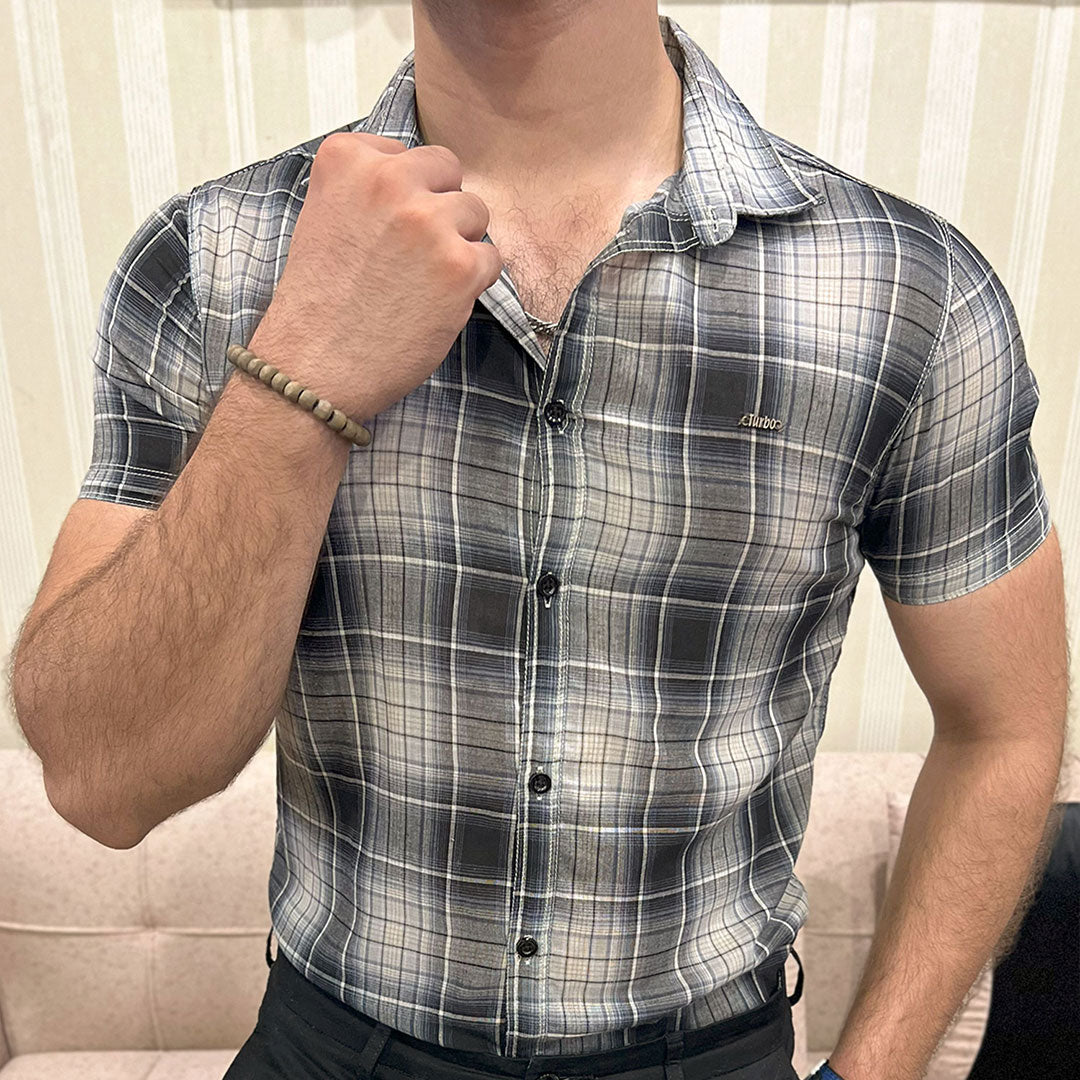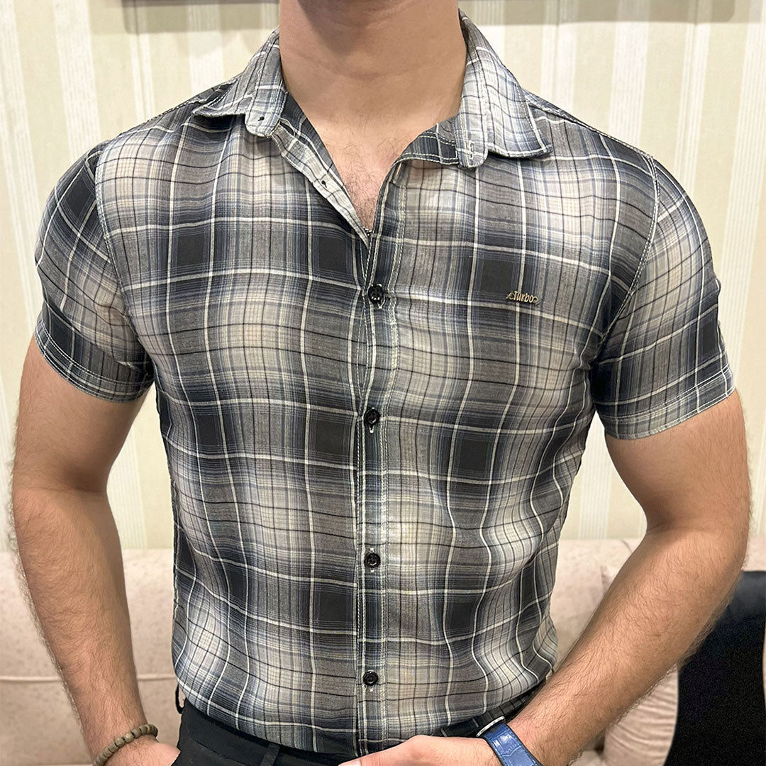 Turbo Classic Pattern Comfort Casual Shirt In Charcoal Black