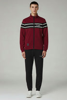 Turbo Color-Block Panel Standing Collar Zipper Tracksuit In Black&Maroon