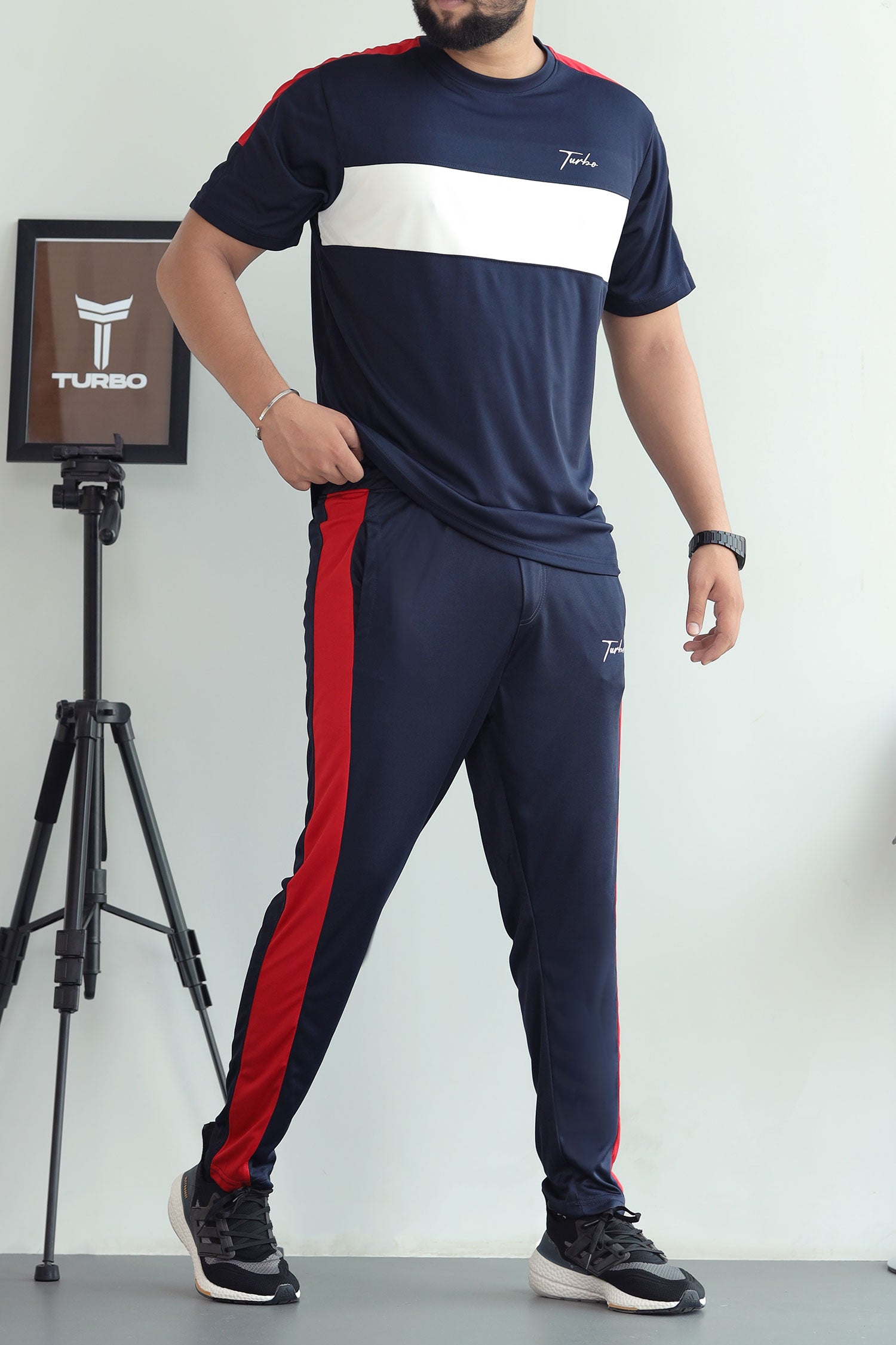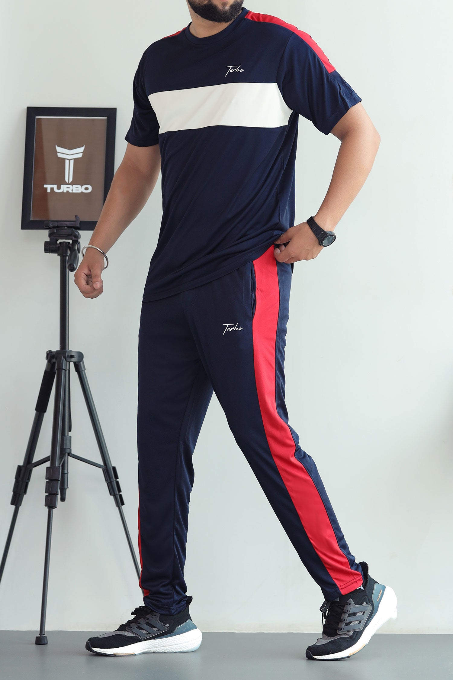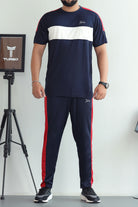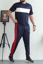 Turbo Color-Block Pannel Quick-Dry Tracksuit In Navy Blue