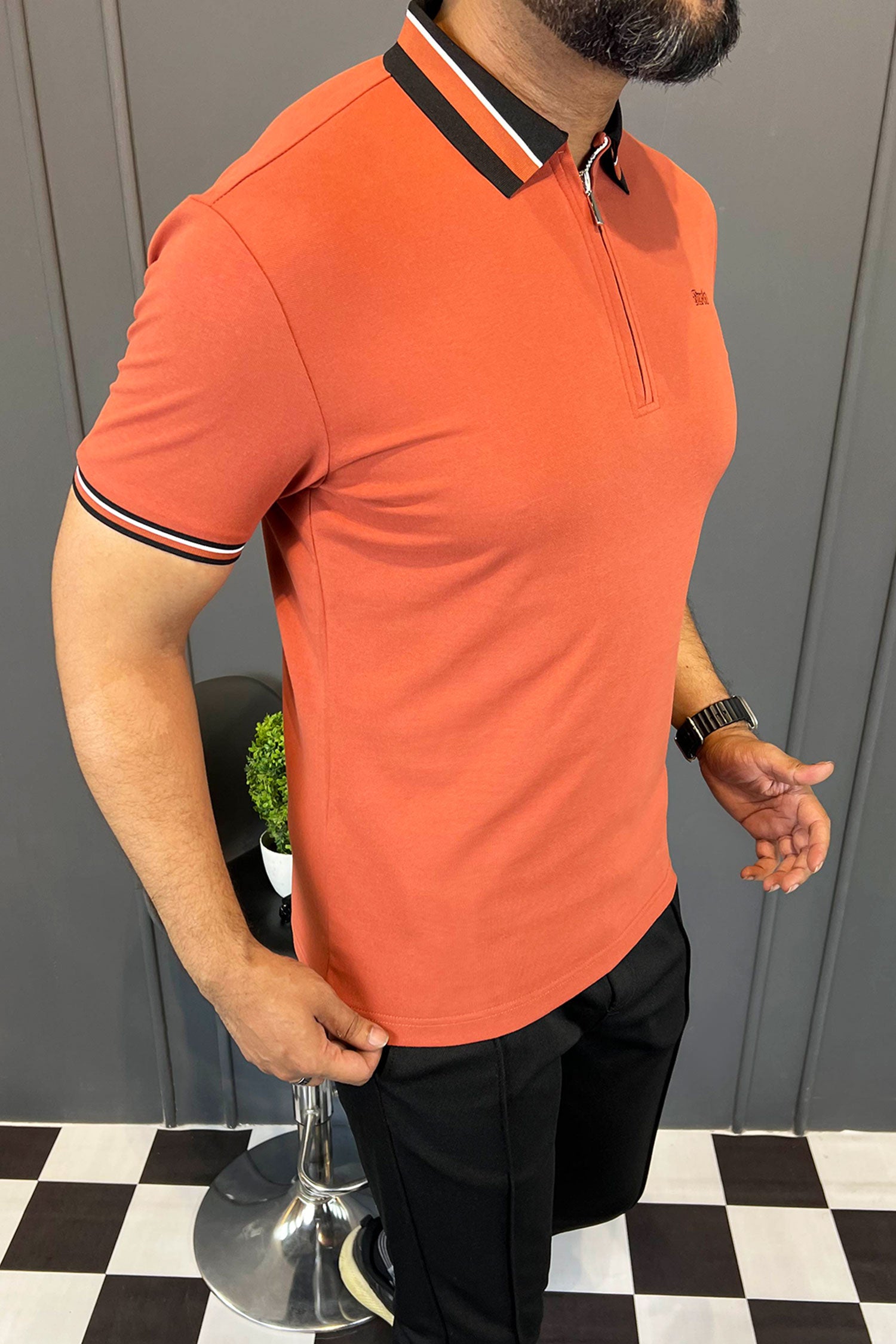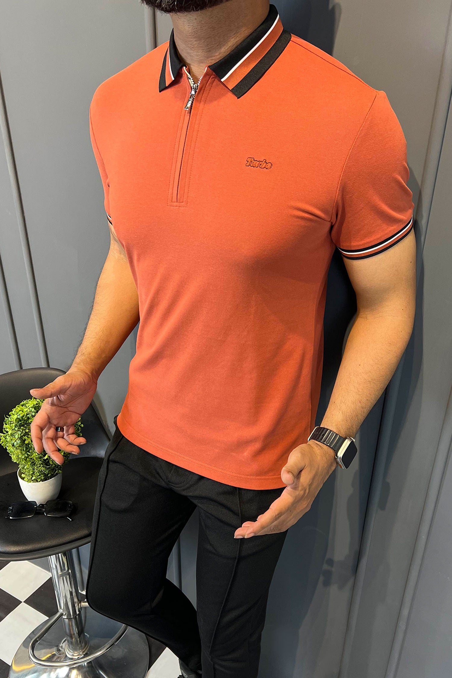 Turbo Contrast Tone Zip Collar Men's Polo Shirt In Red Brick