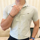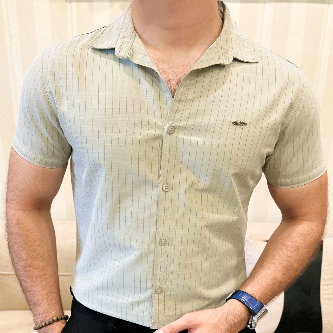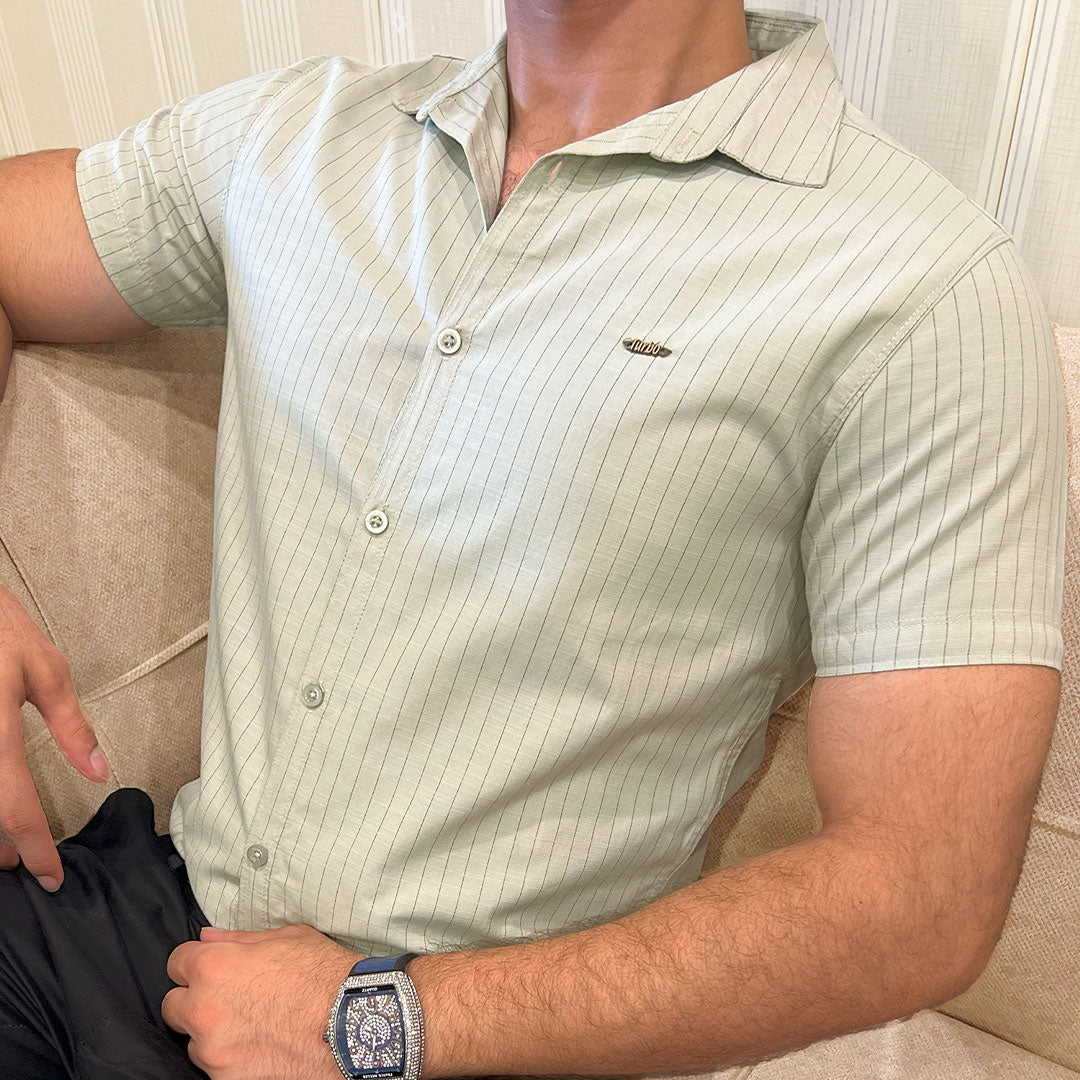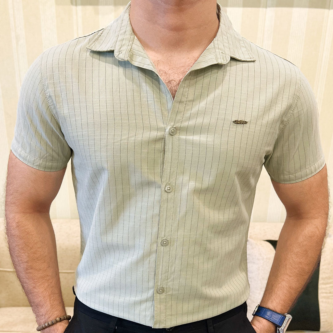Turbo Creamline Striped Comfort Casual Shirt In Light Moss Green