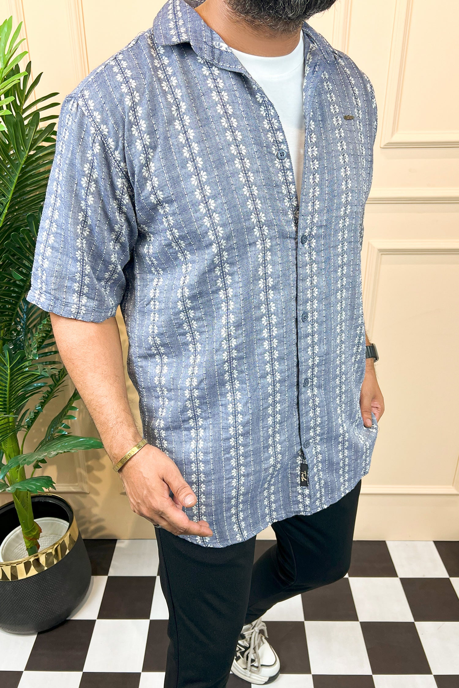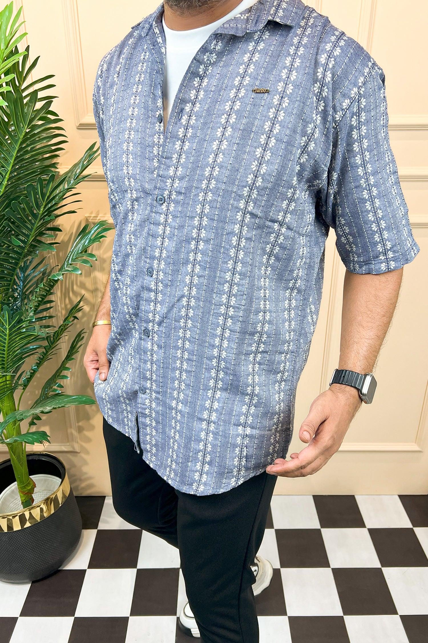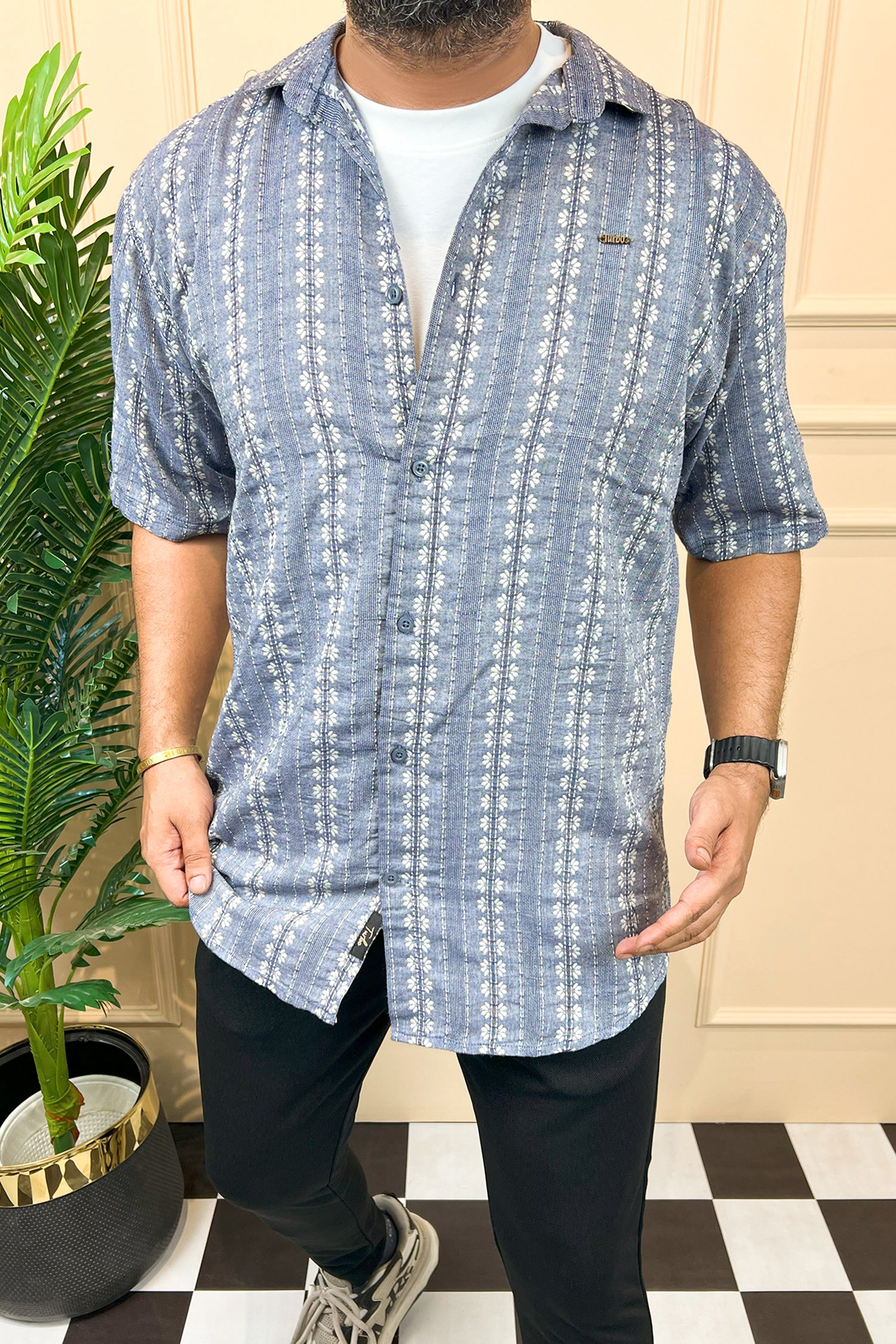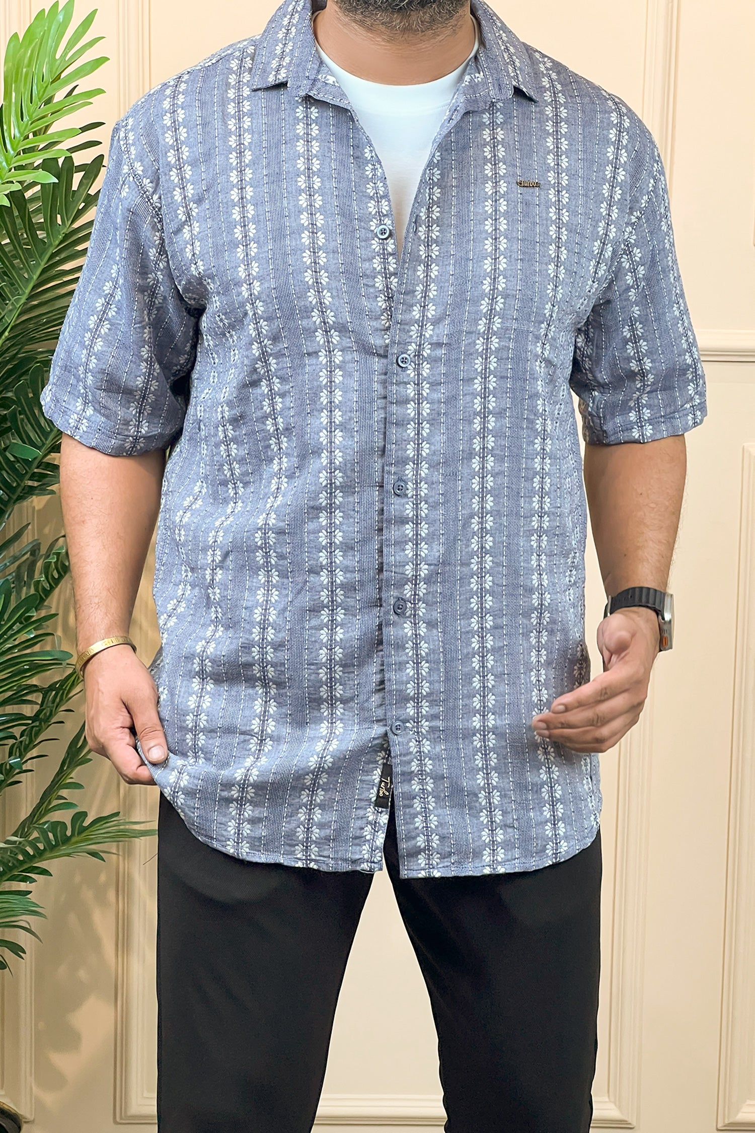 Turbo Cubin Textured Striped Casual Shirt