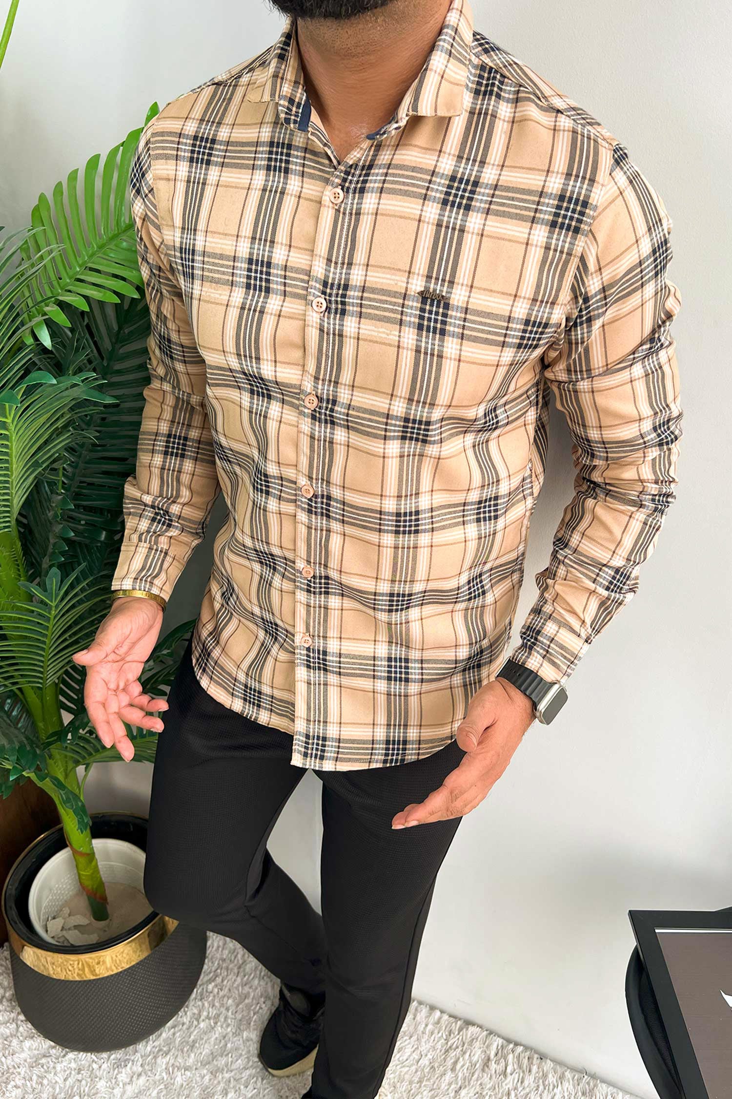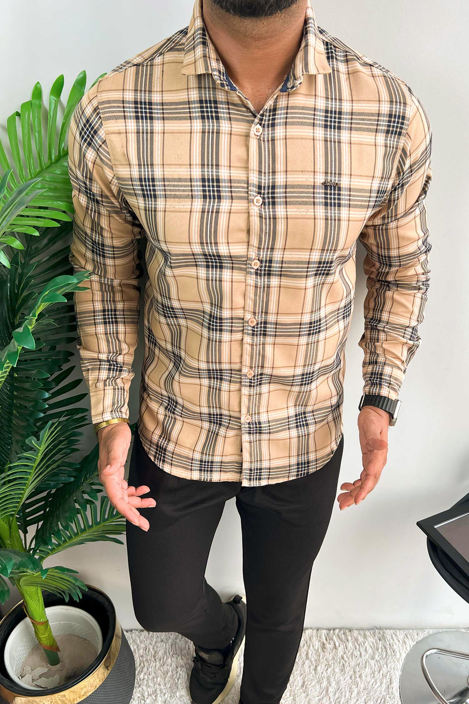 Turbo Cubix Checks Long Sleeve Cotton Casual Shirt In Light Skin