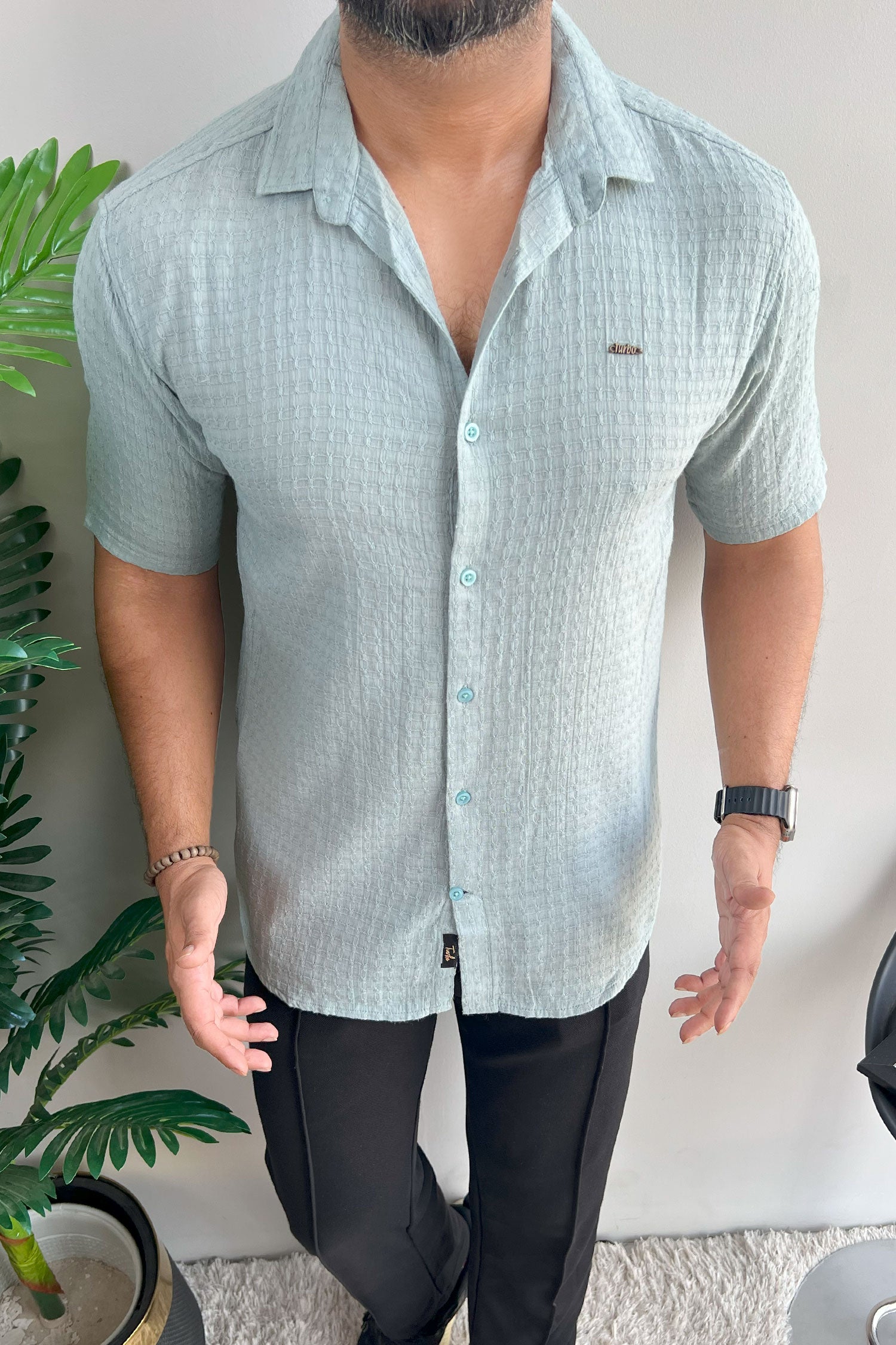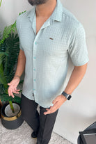 Turbo Designer Motif Embossed Casual Shirt In Sea Foam