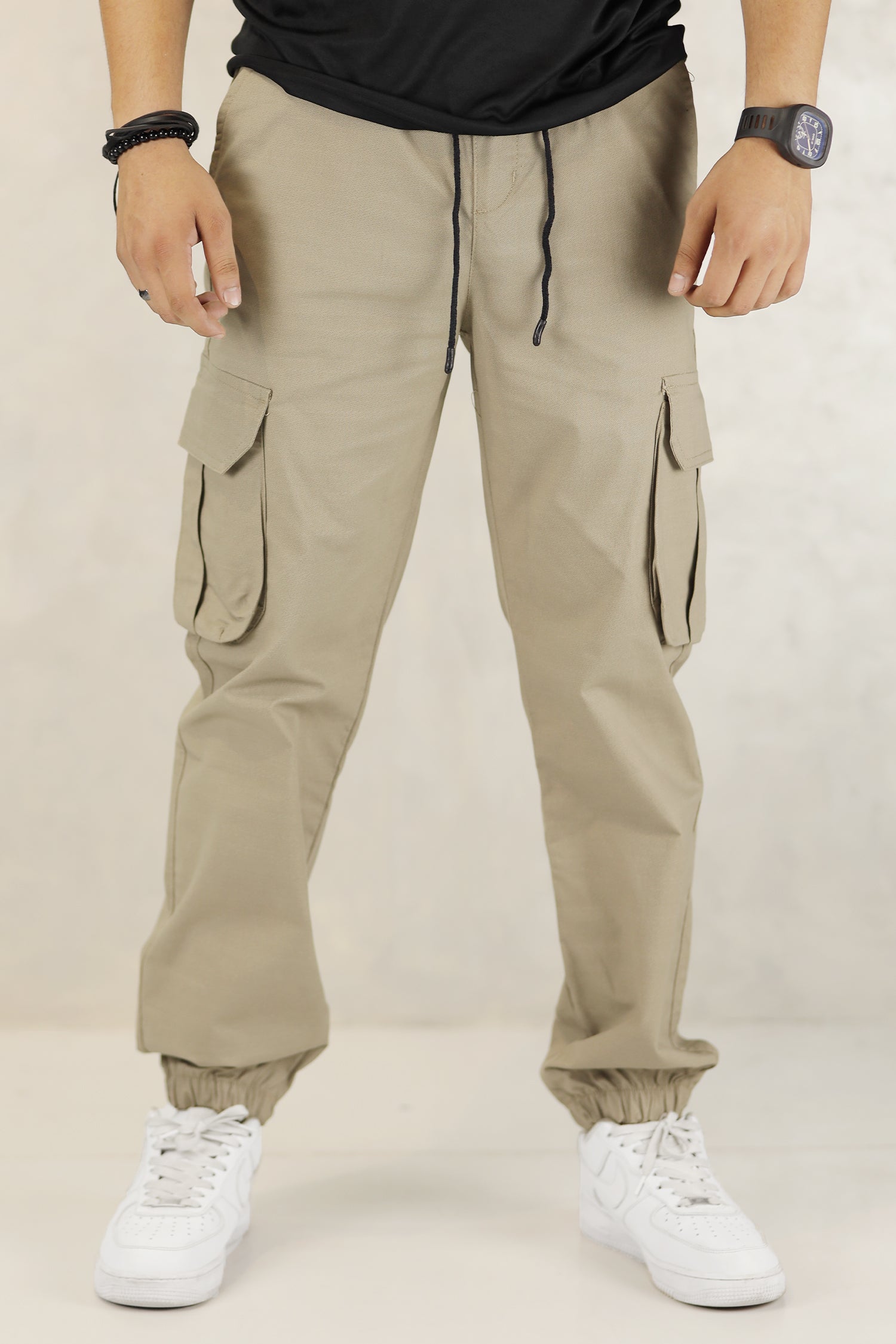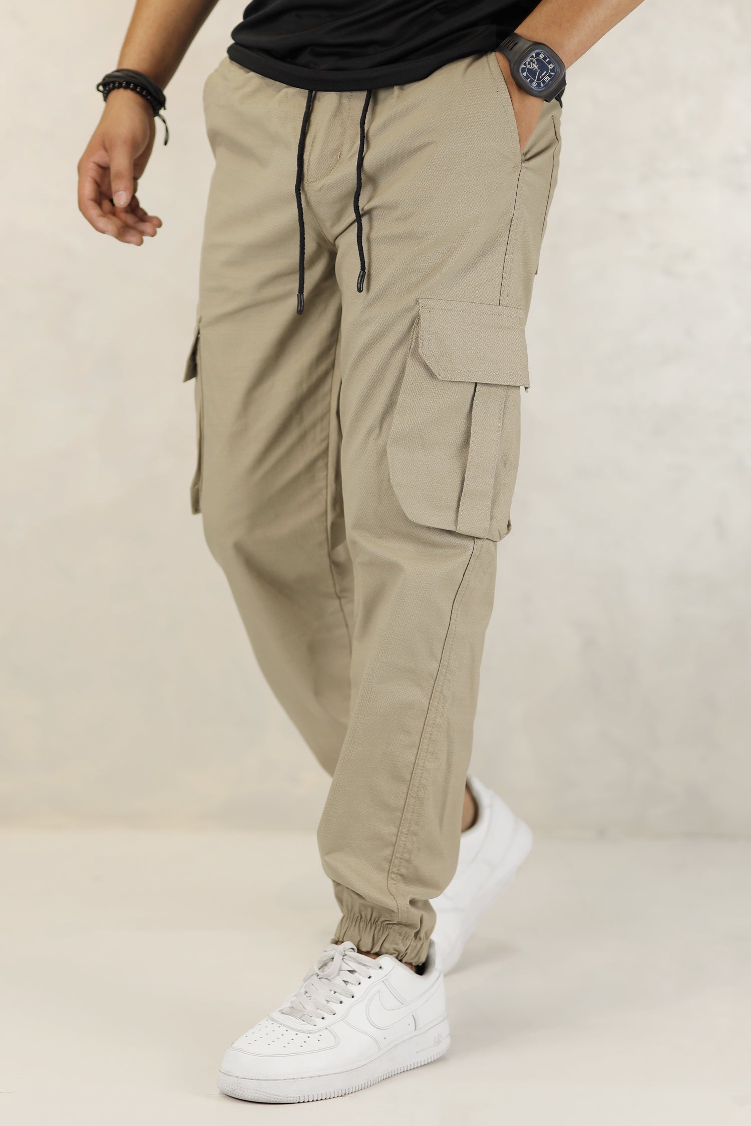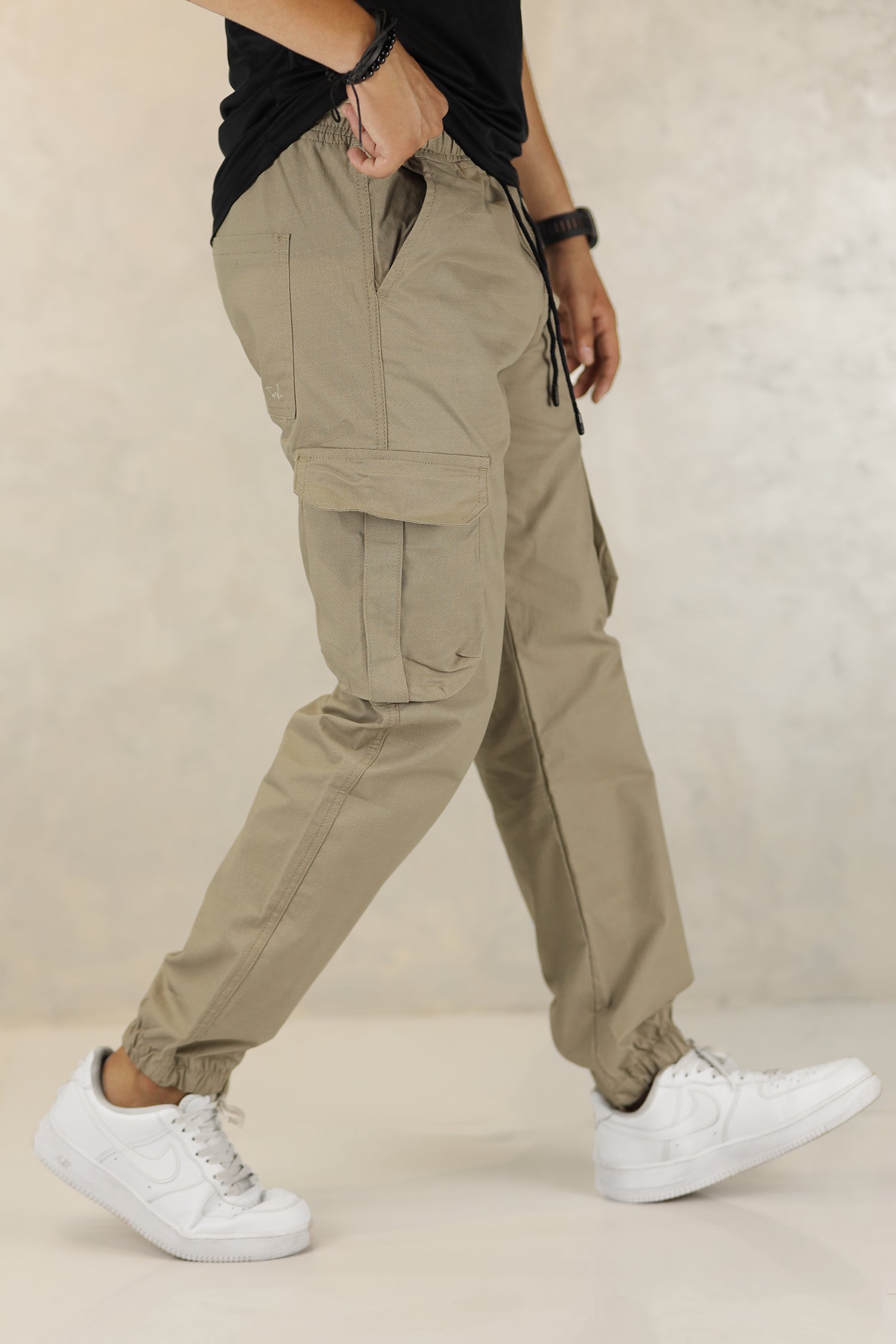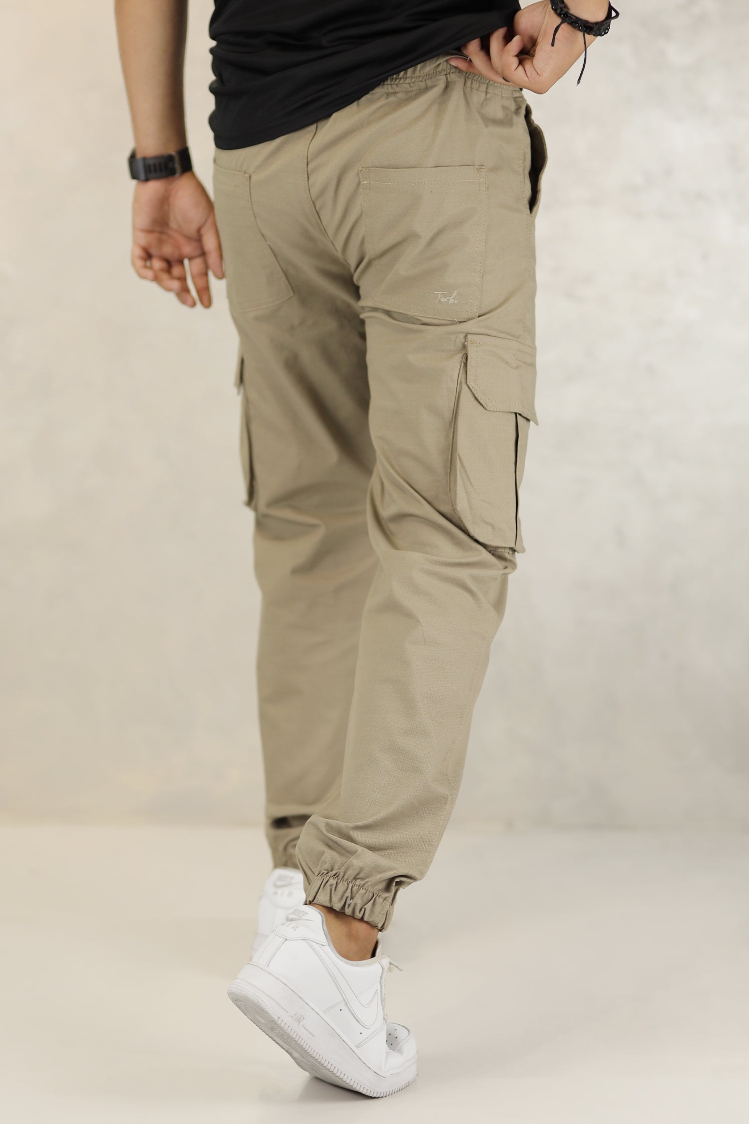 - These branded Loose Bottom Cargo trousers are designed with an elastic waist with adjustment strap and Loose bottom for the perfect fit.