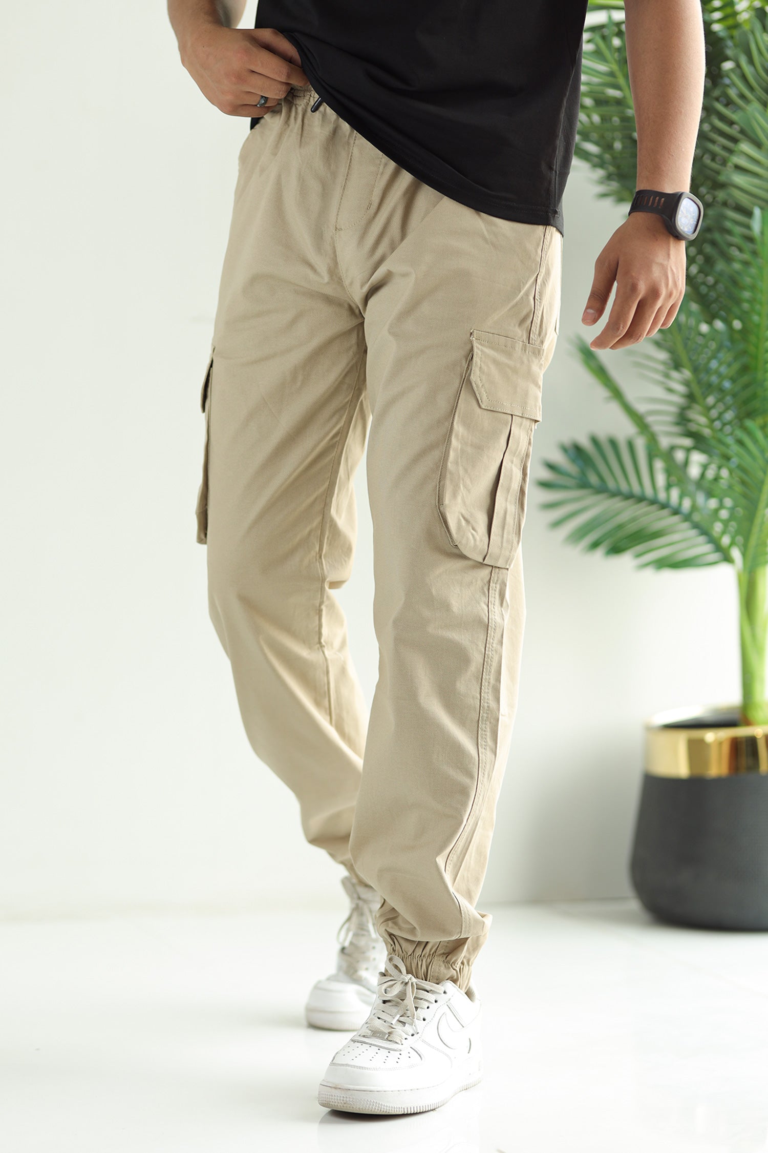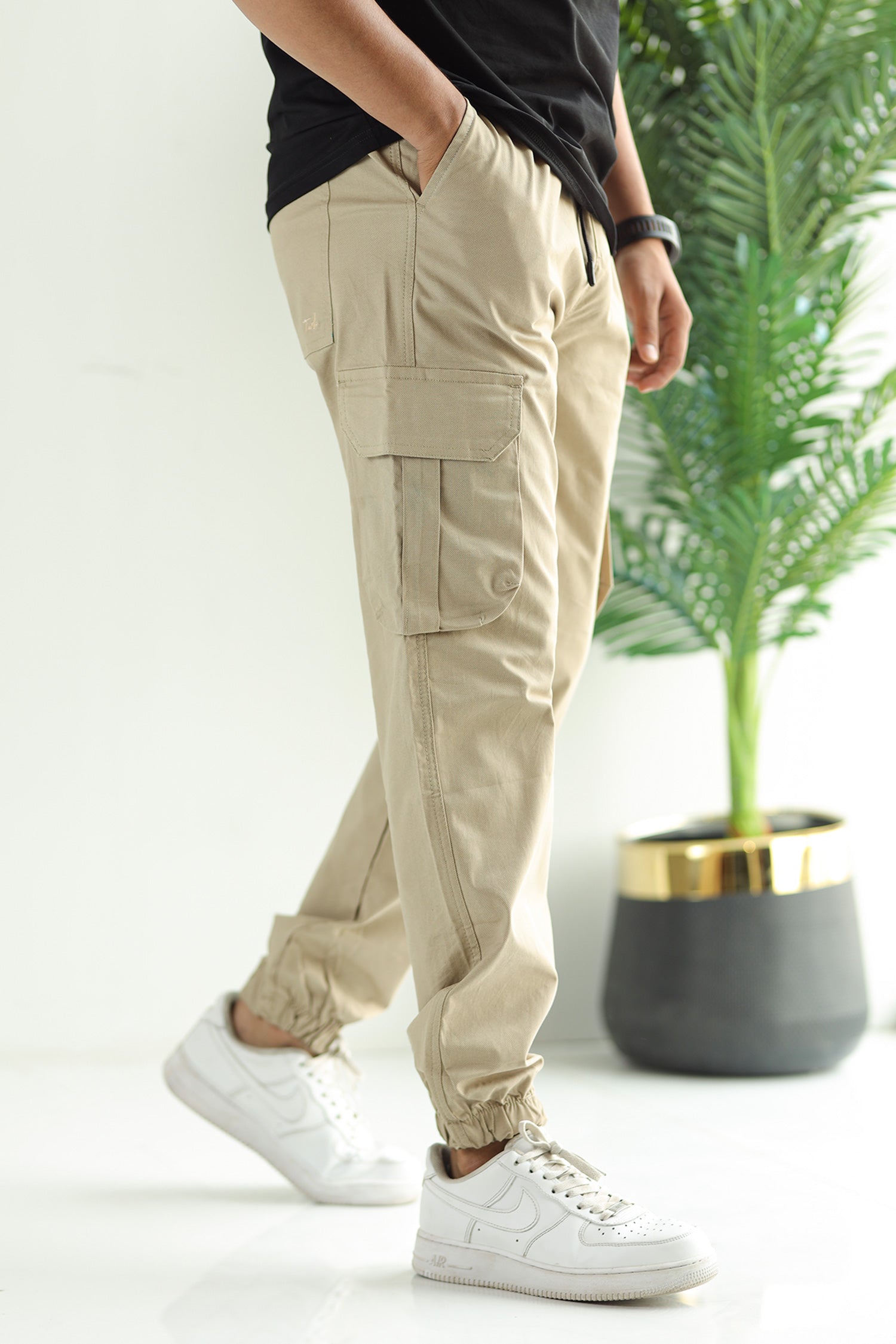 Turbo DrawString Pockets Cotton Loose Bottom Trouser In Light Skin
