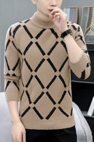 Turbo Geometric Print Imported Men's Sweater In Light Brown