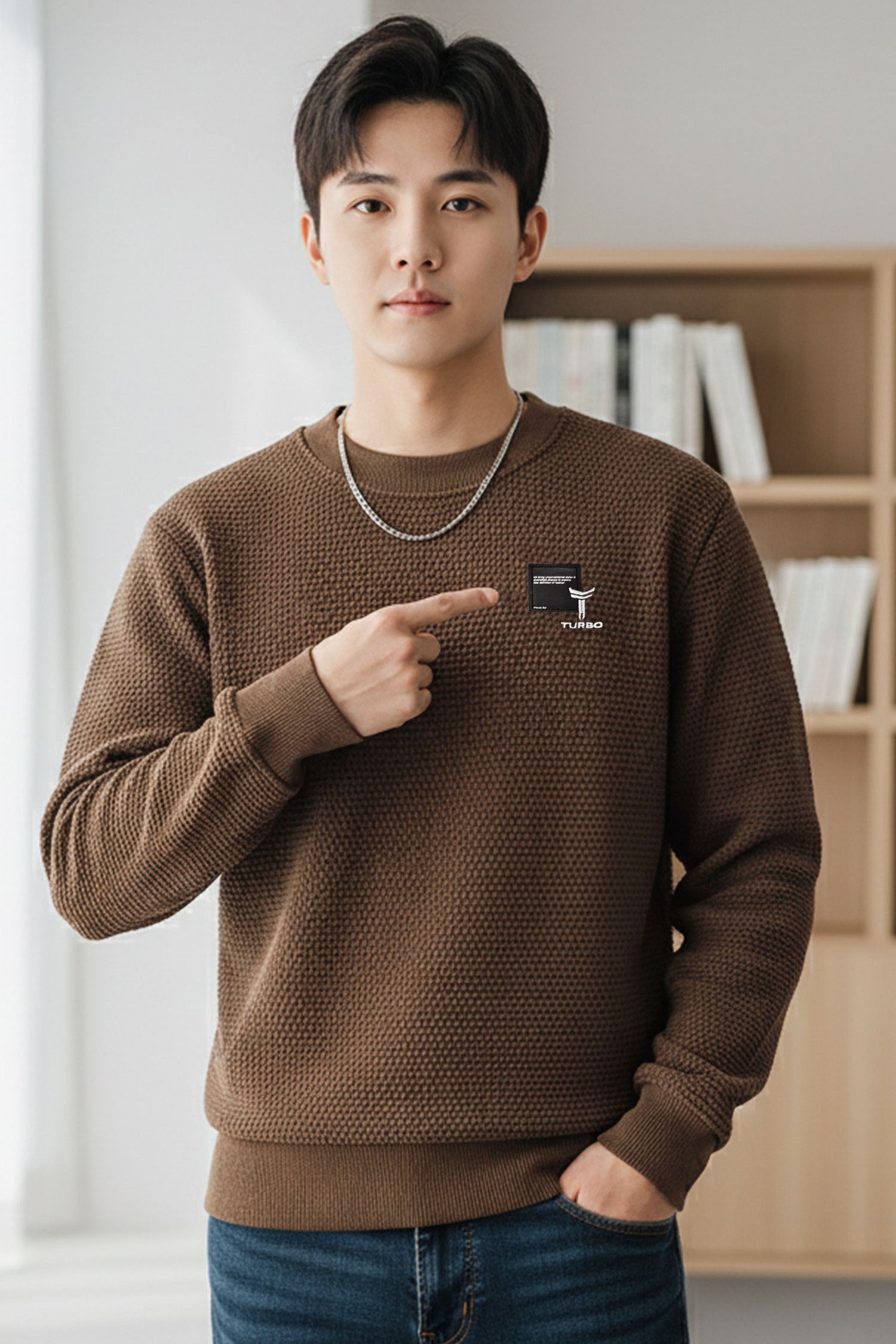 Turbo HoneyComb Patterened Imported Men's Sweatshirt In Brown