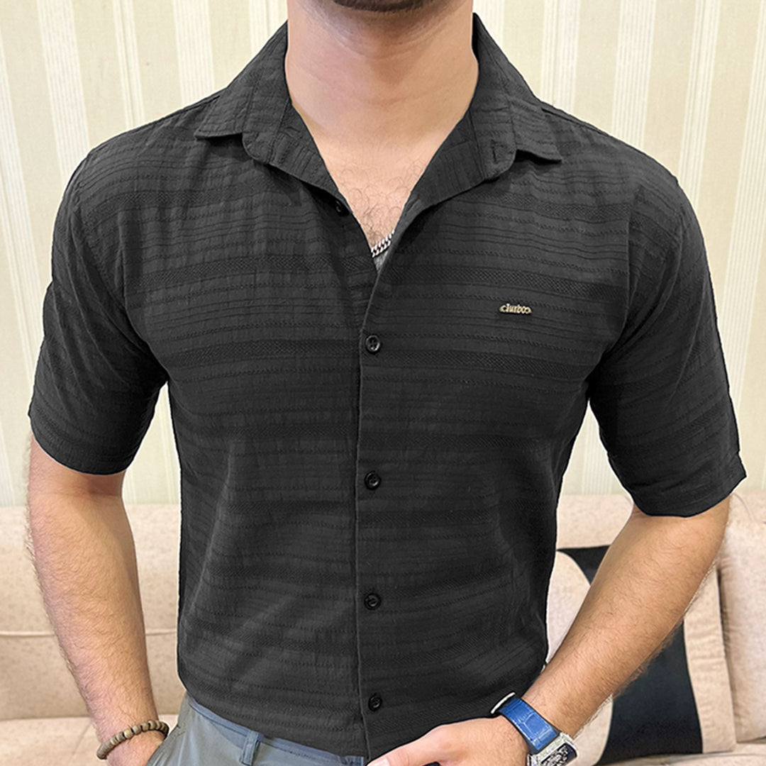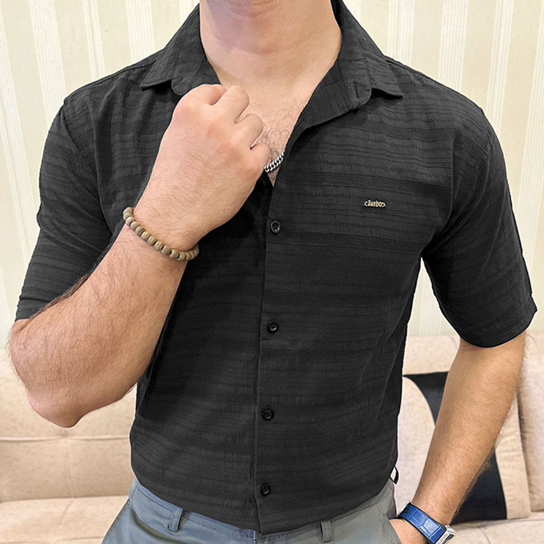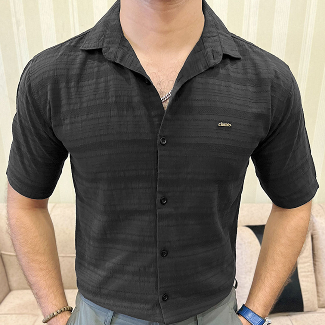 Turbo Knit Craft Crochet Casual Shirt In Black