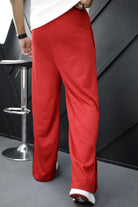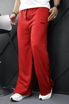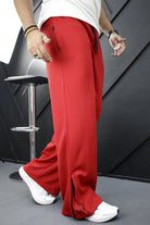 Turbo Loose Zipper Bottom Imp Cotton Blend Trouser In Red