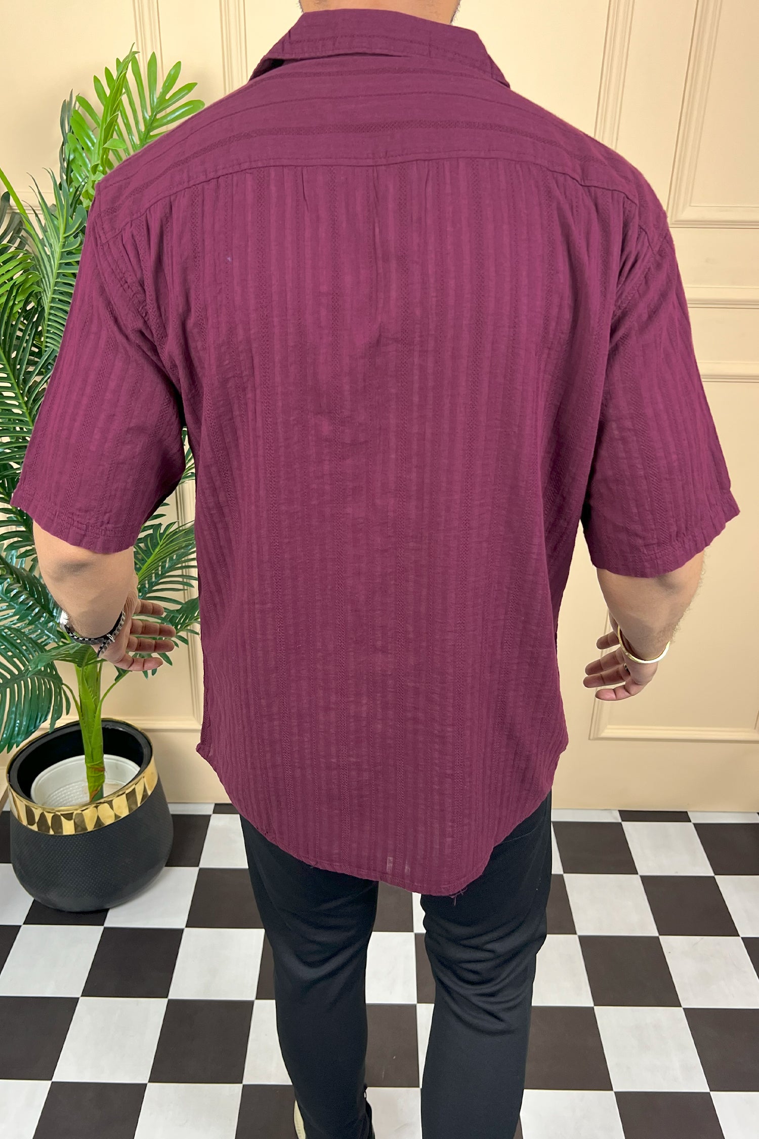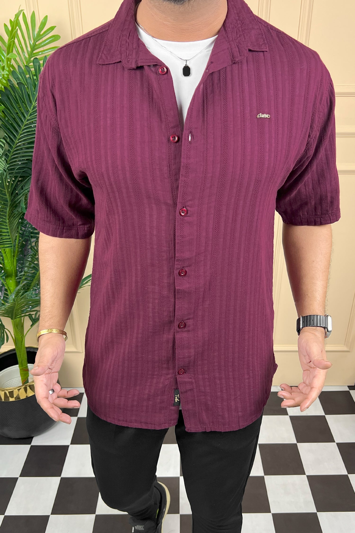 Turbo Minimalist Design Half Sleeve Casual Shirt In Plum