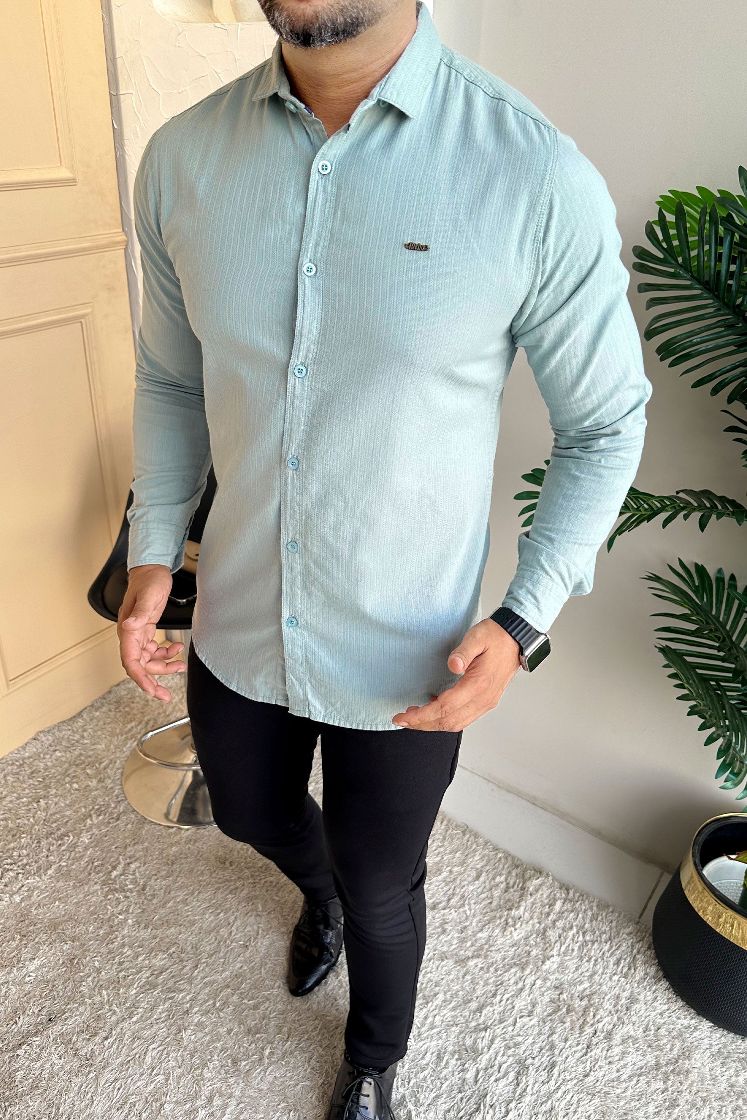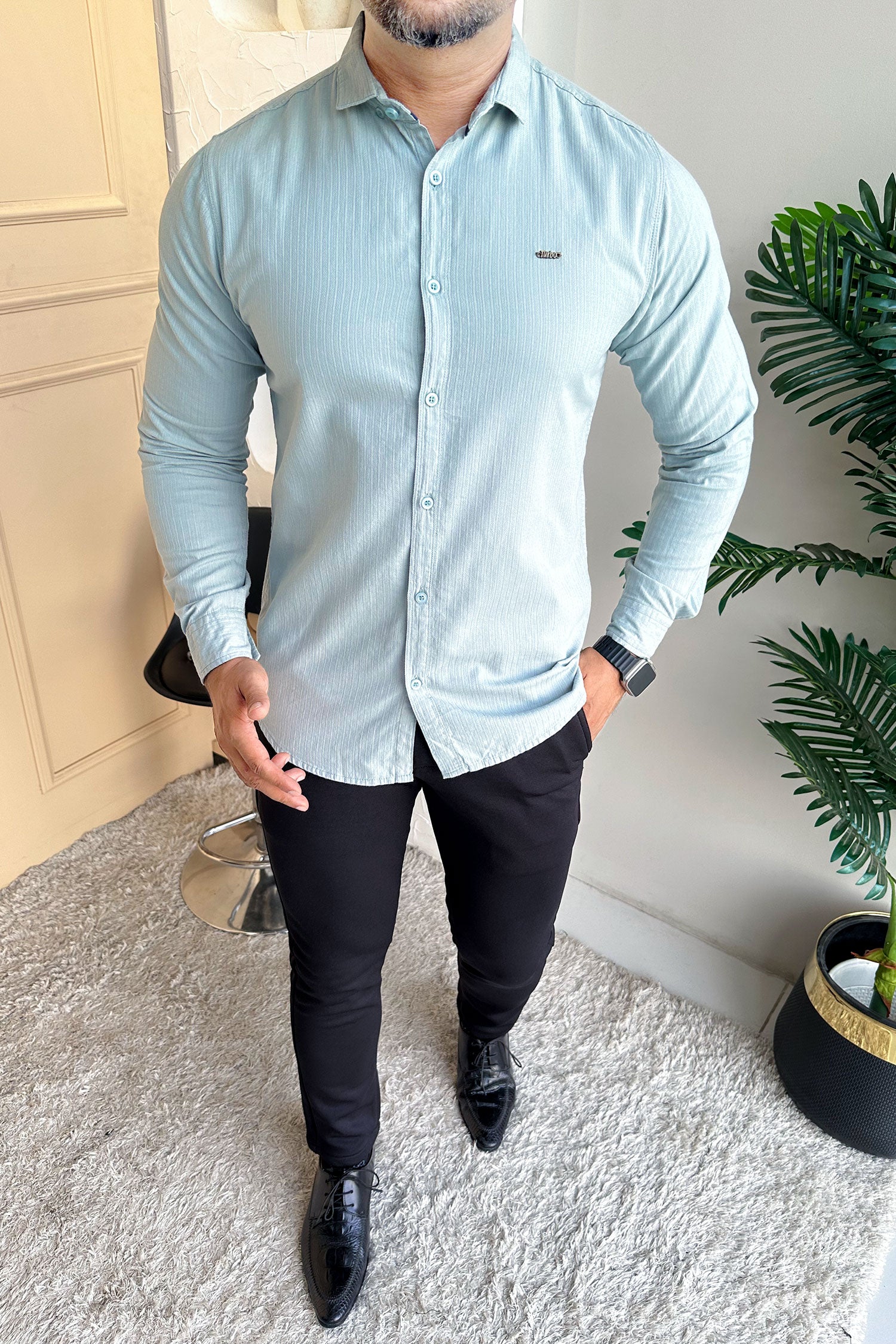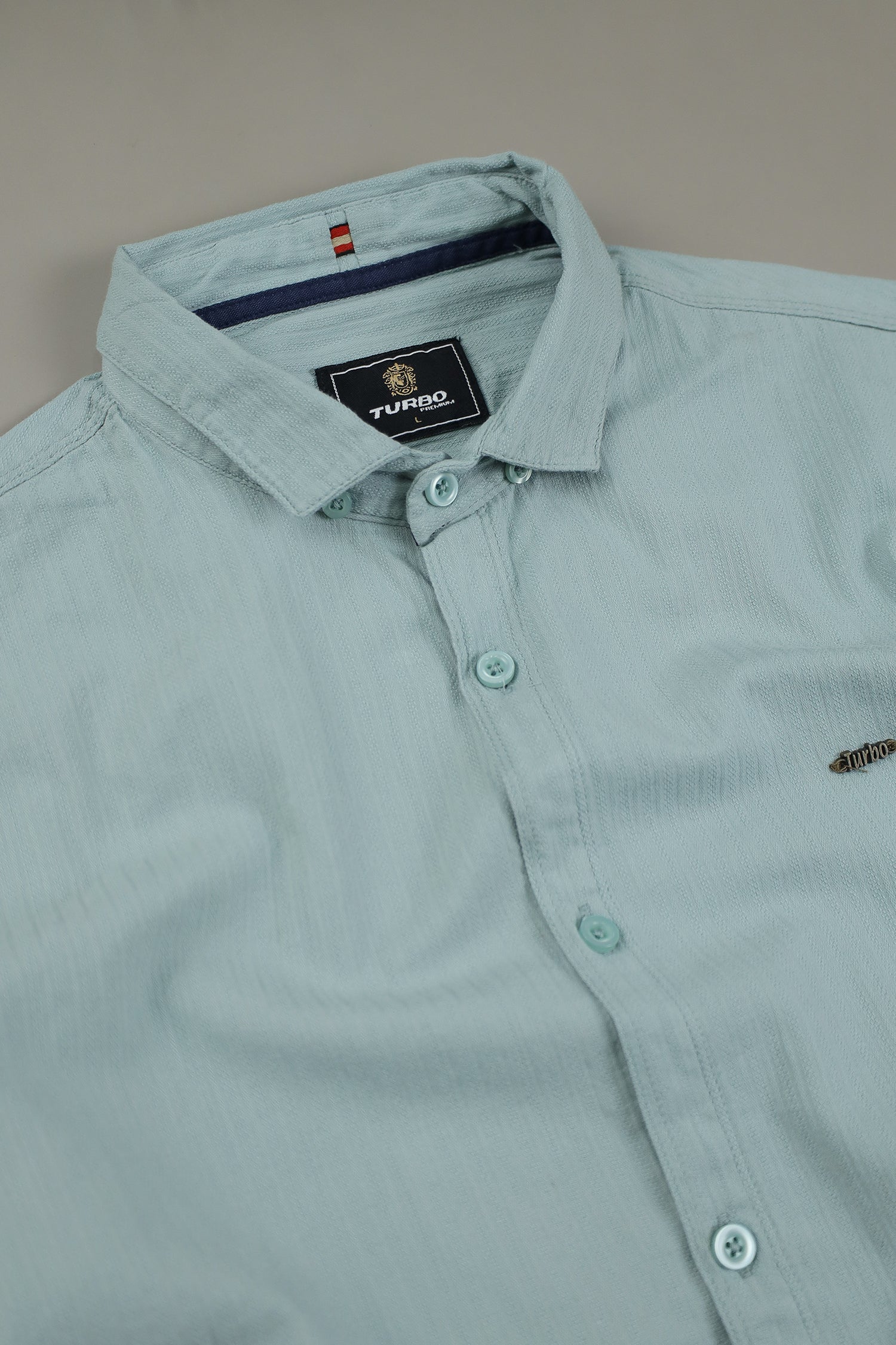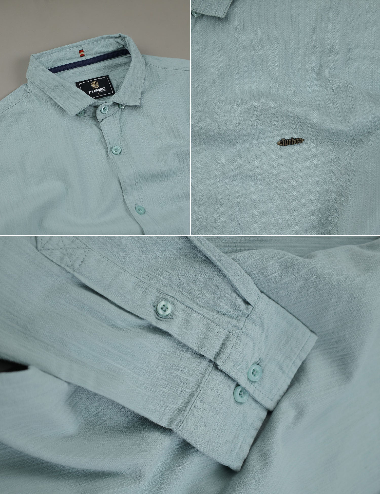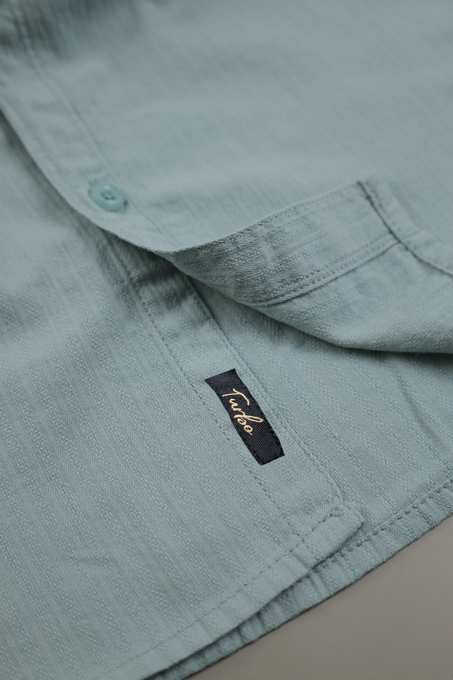 Turbo Organic MonoChromatic Long Sleeve Cotton Casual Shirt In Cyan