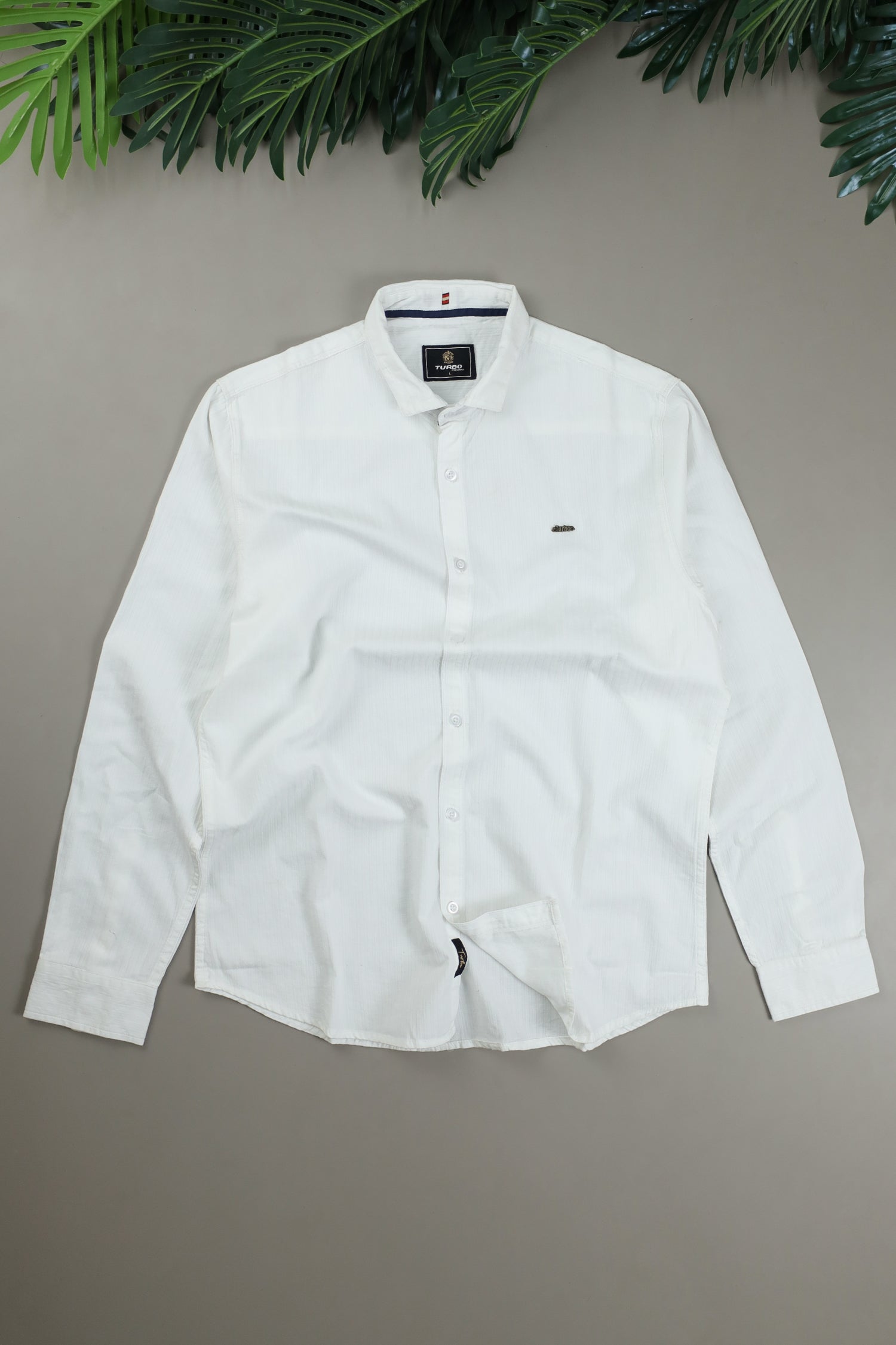 Turbo Organic MonoChromatic Long Sleeve Cotton Casual Shirt in White